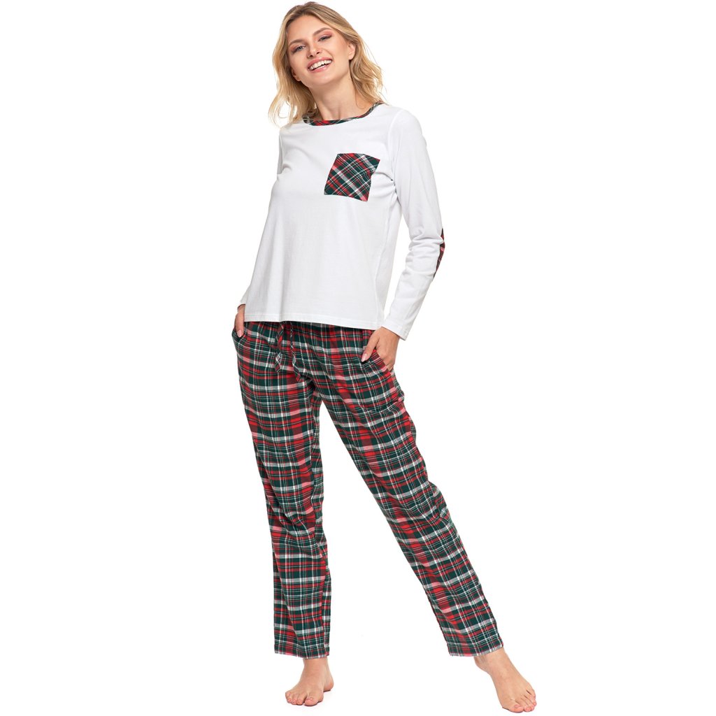 Dámské kostkované pyžamo.- tričko s ozdobnou kapsou