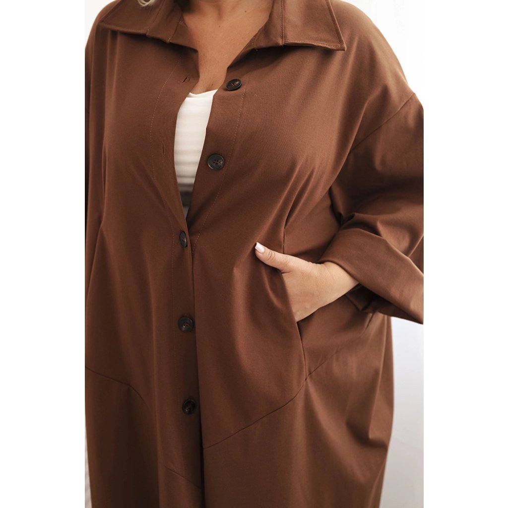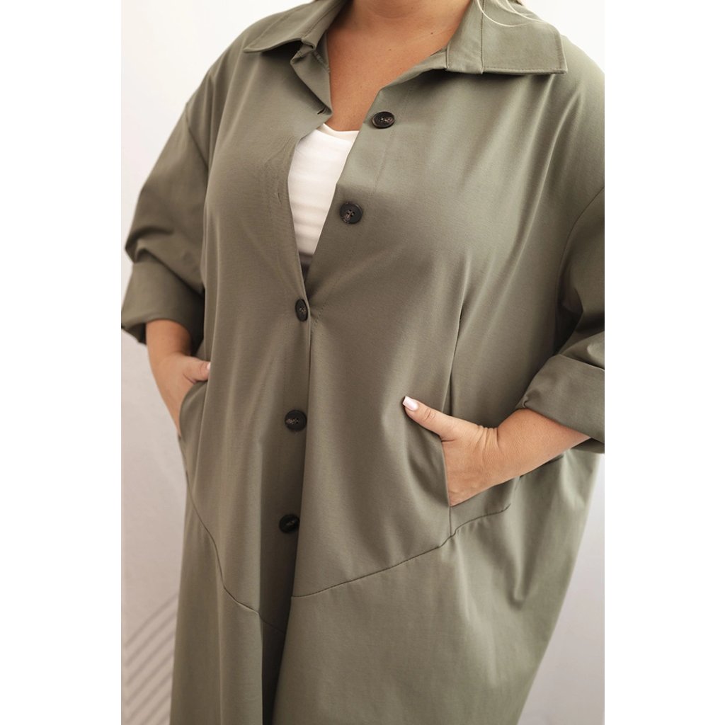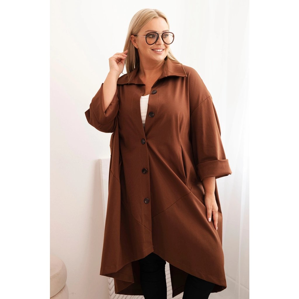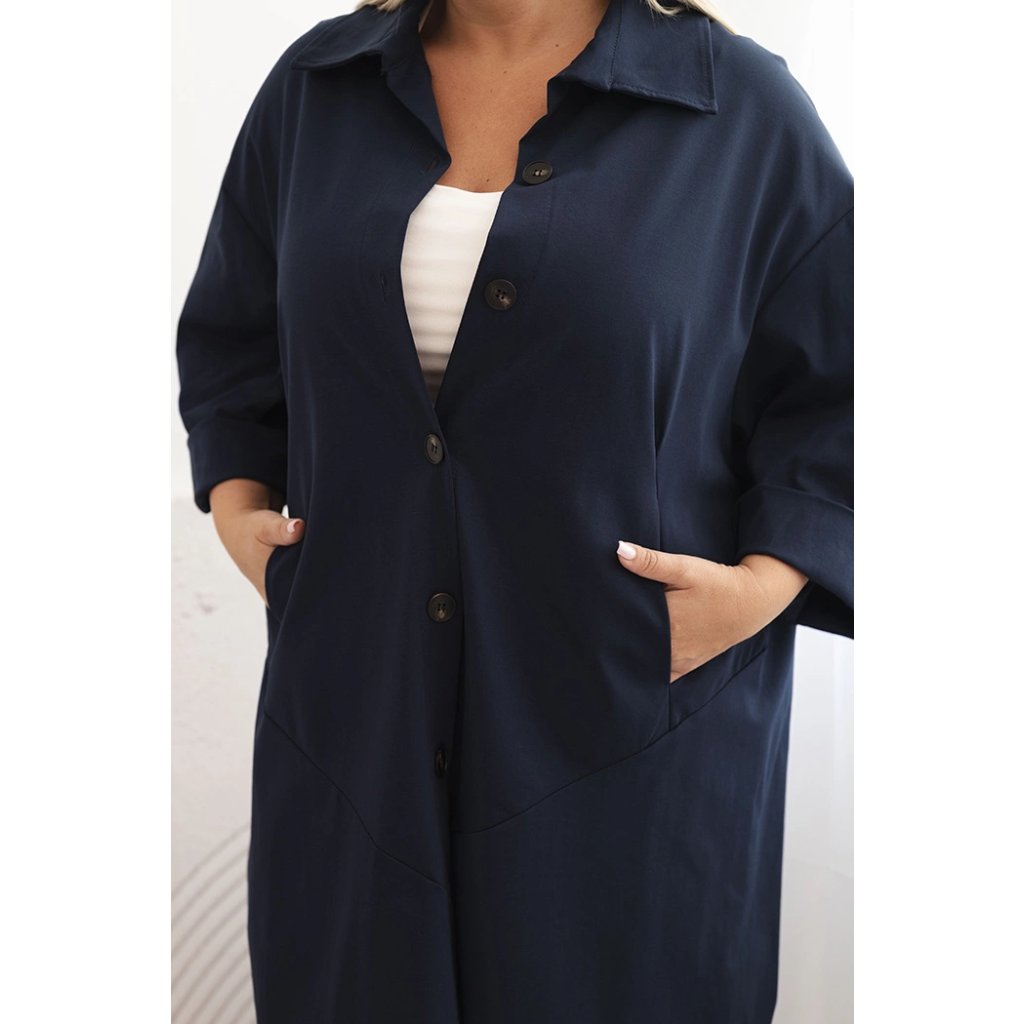 Dámské sako plus size z bavlny typu punto je skvělým návrhem pro každodenní i stylové outfity. Má klasický límec, zapínání na knoflíky a volný střih s prodlouženým zadním dílem, který zeštíhluje postavu. Měkký, elastický materiál zajišťuje pohodlí a dobré přizpůsobení.