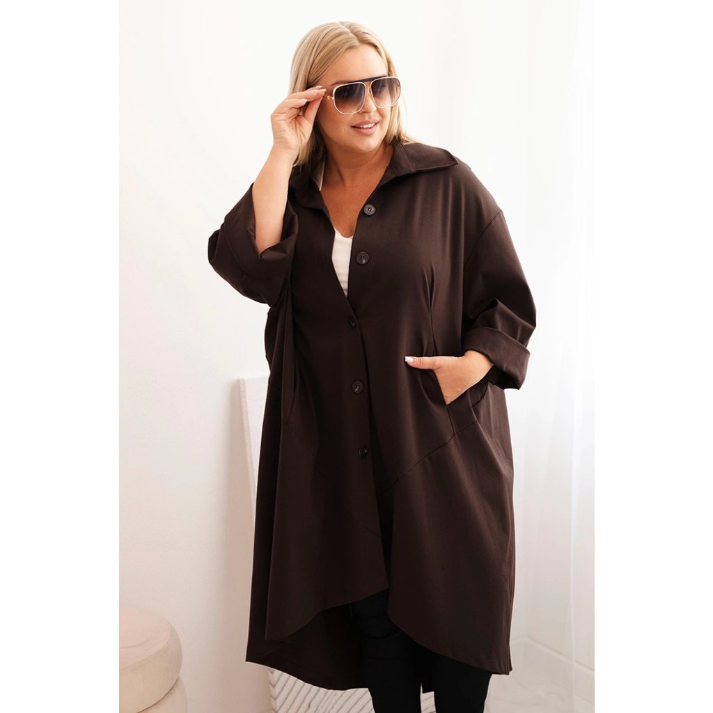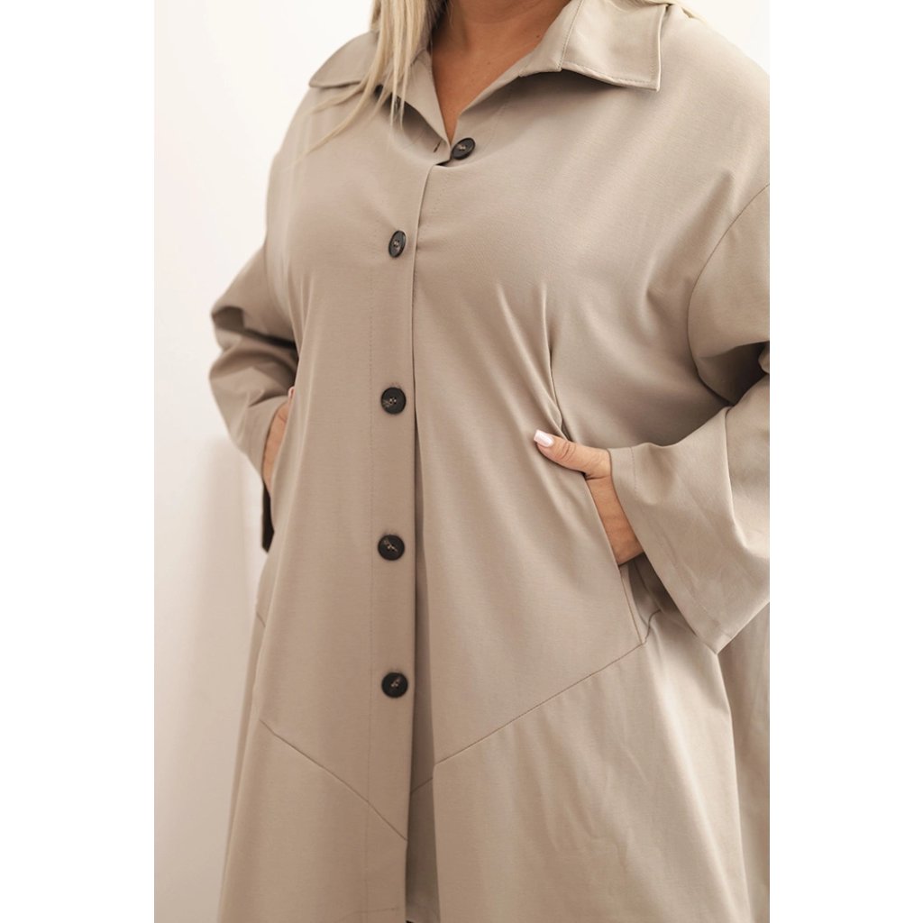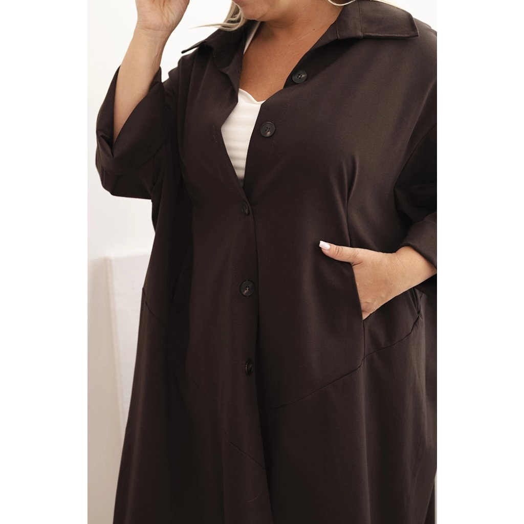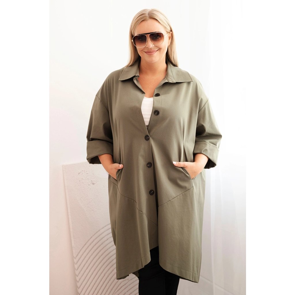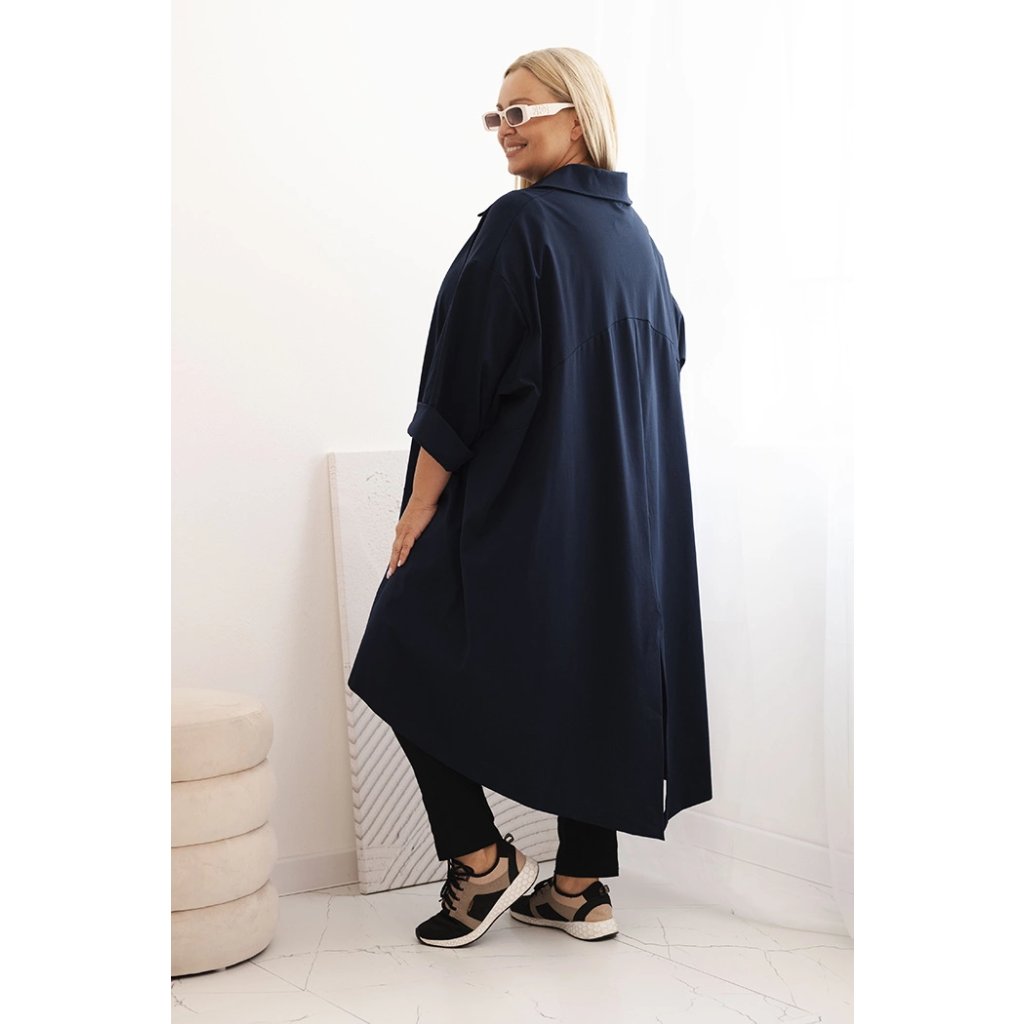 Dámské sako plus size z bavlny typu punto je skvělým návrhem pro každodenní i stylové outfity. Má klasický límec, zapínání na knoflíky a volný střih s prodlouženým zadním dílem, který zeštíhluje postavu. Měkký, elastický materiál zajišťuje pohodlí a dobré přizpůsobení.