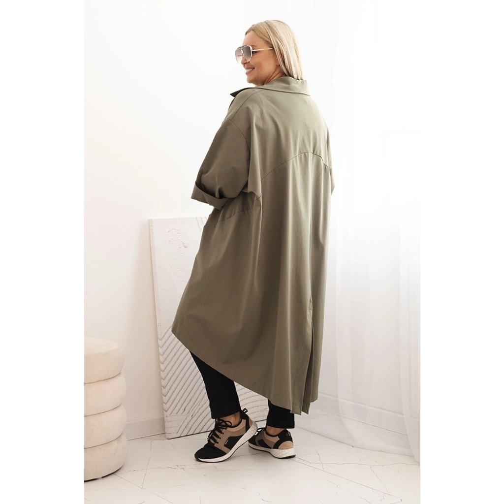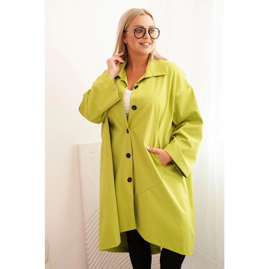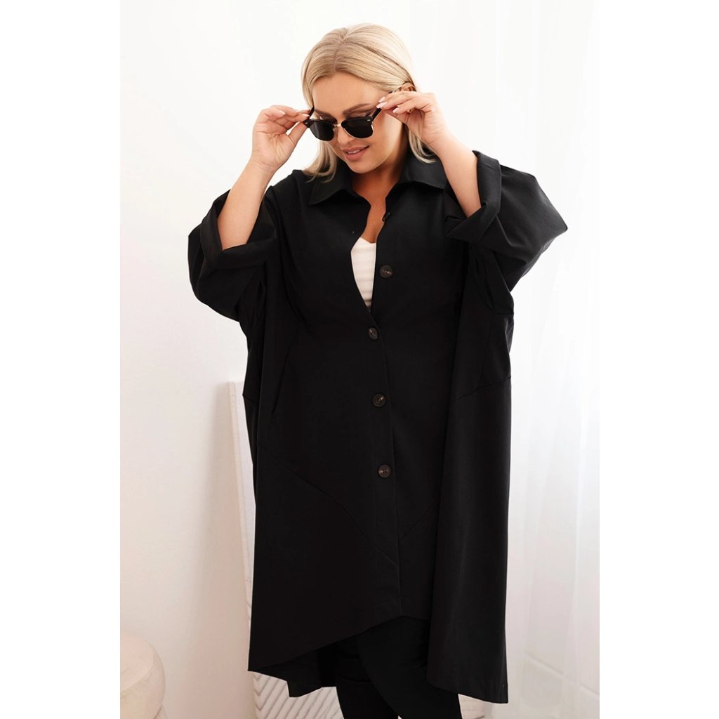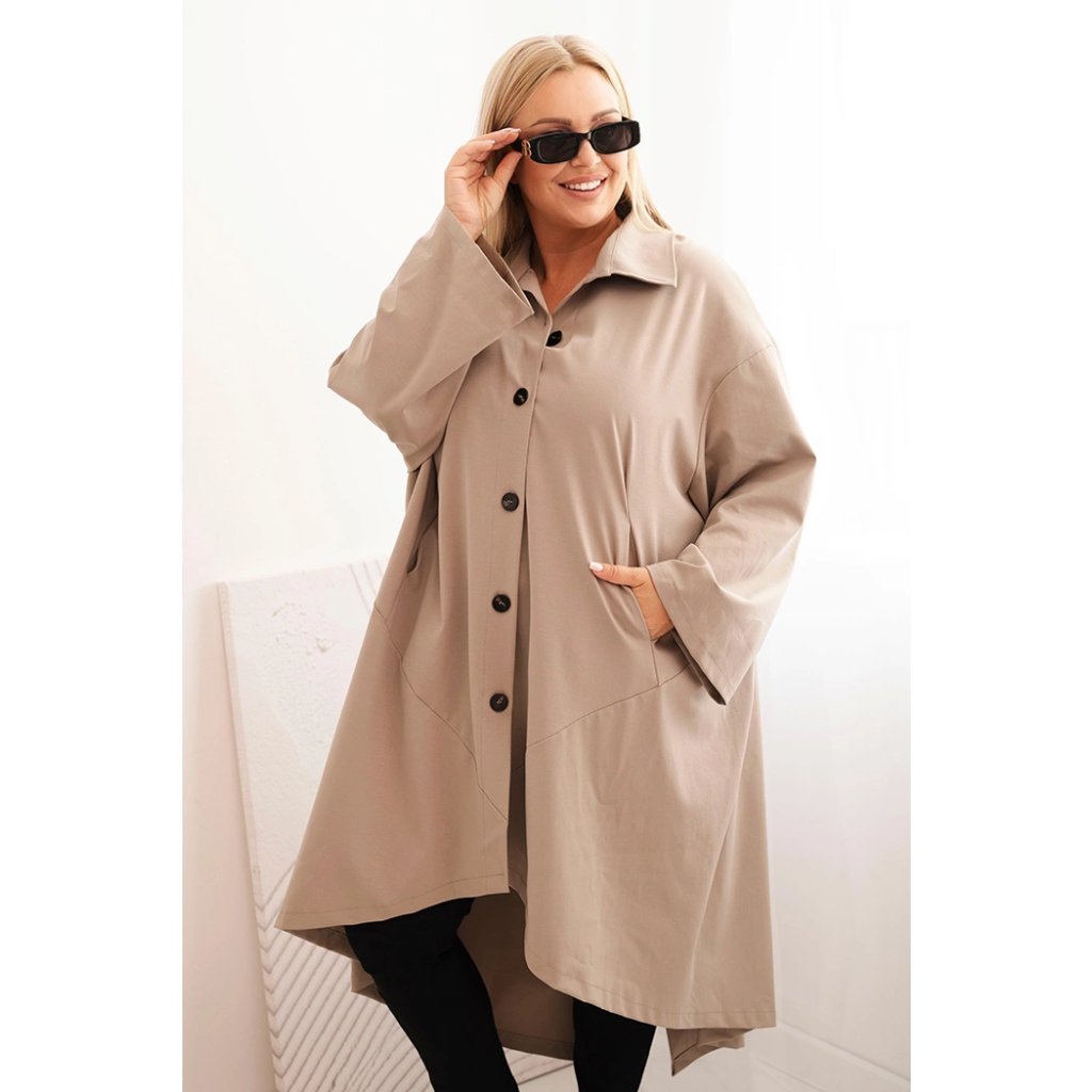 Dámské sako plus size z bavlny typu punto je skvělým návrhem pro každodenní i stylové outfity. Má klasický límec, zapínání na knoflíky a volný střih s prodlouženým zadním dílem, který zeštíhluje postavu. Měkký, elastický materiál zajišťuje pohodlí a dobré přizpůsobení.