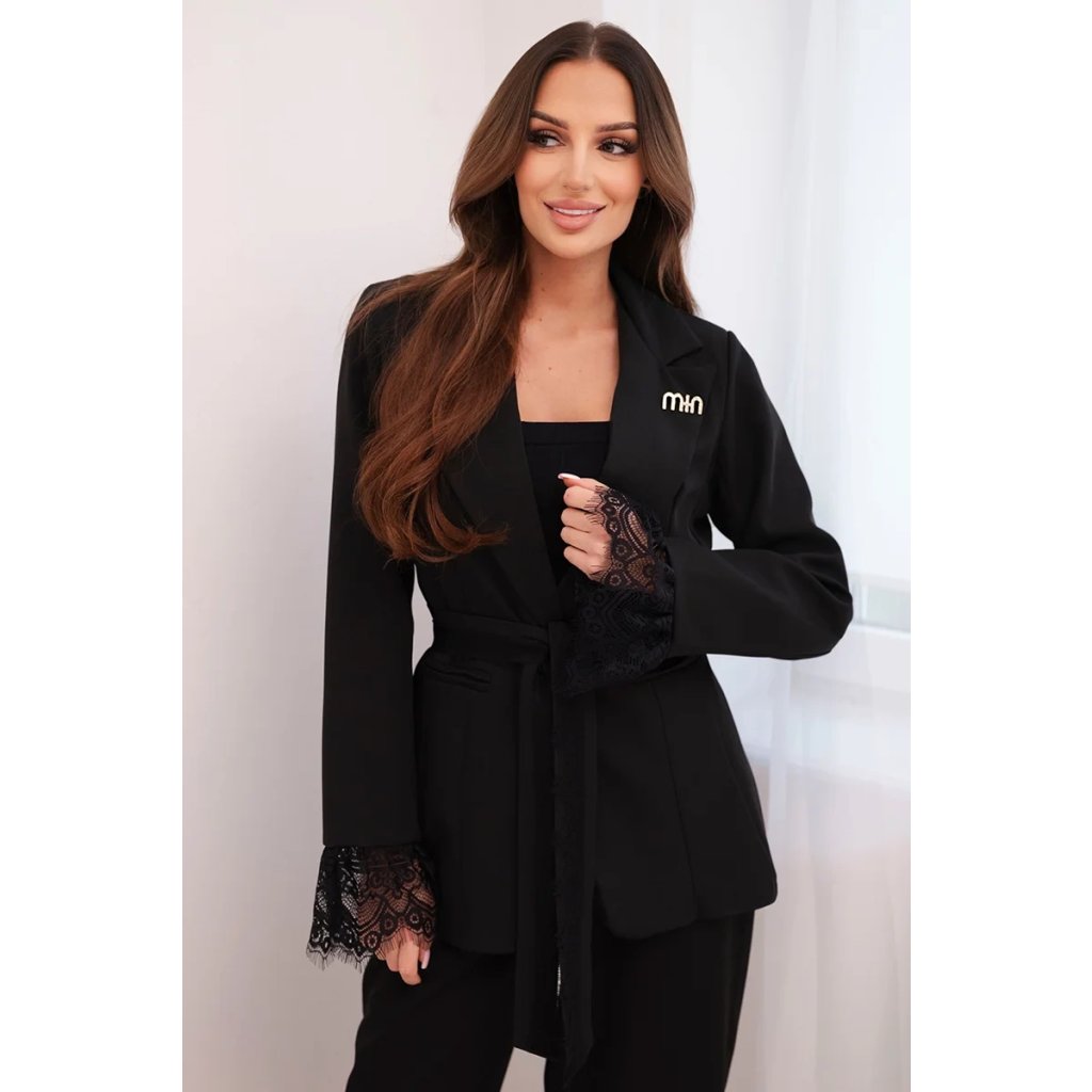 Dámské sako ART8759 s páskem a krajkovým zakončením rukávů