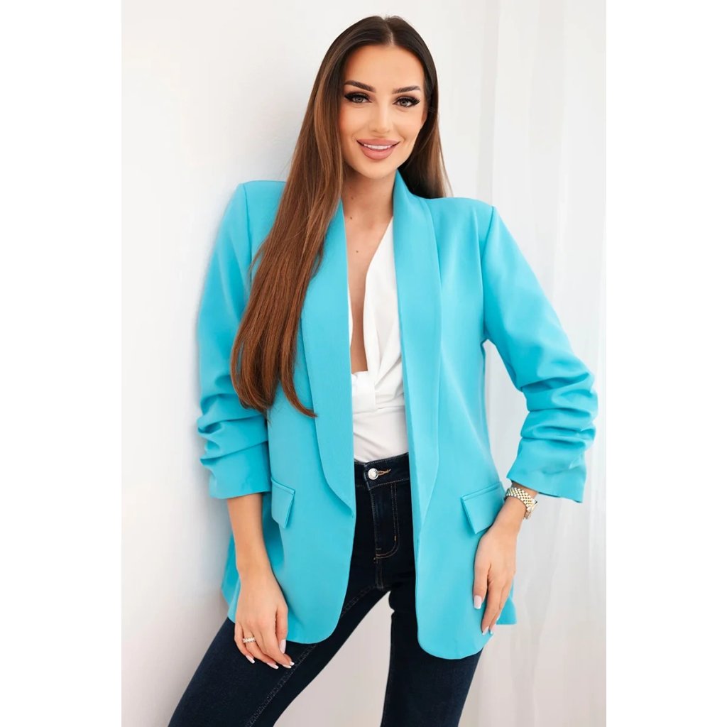 Představujeme vám elegantní sako. Sako bez zapínání s klopami vpředu. Tento model bude skvělou volbou pro mnoho typů postav, dodávající každému outfitu nenucenou eleganci. Je to základ každého šatníku a prvek stylizace pro speciální příležitosti - na každé roční období a na každou příležitost. Sako je vyrobeno z vysoce kvalitního materiálu. Sako má podšívku. Velikost je univerzální a bude vhodná pro dámy ve velikosti S, M a L.