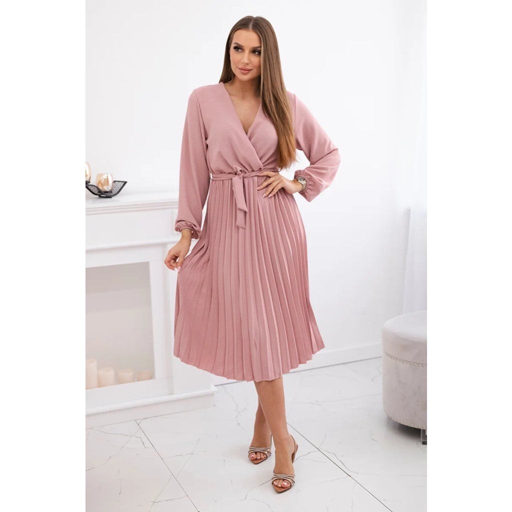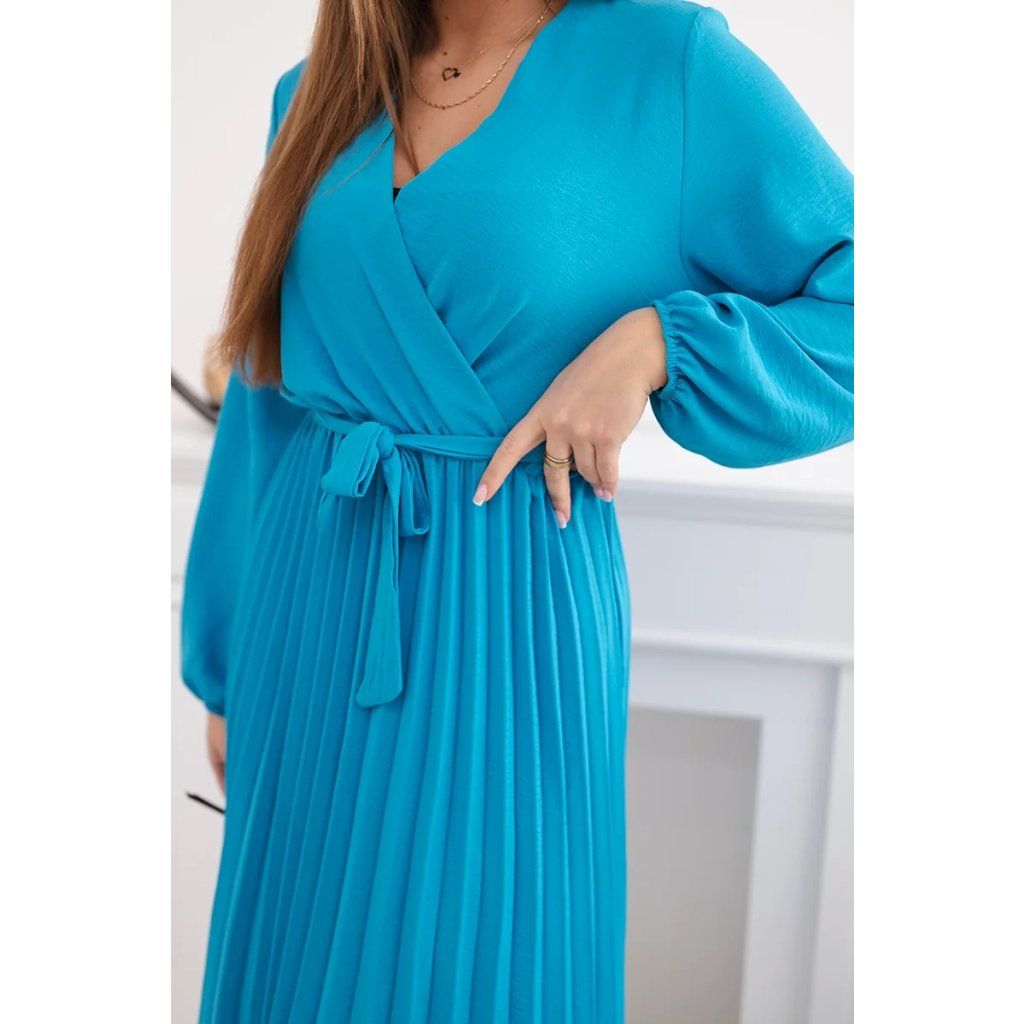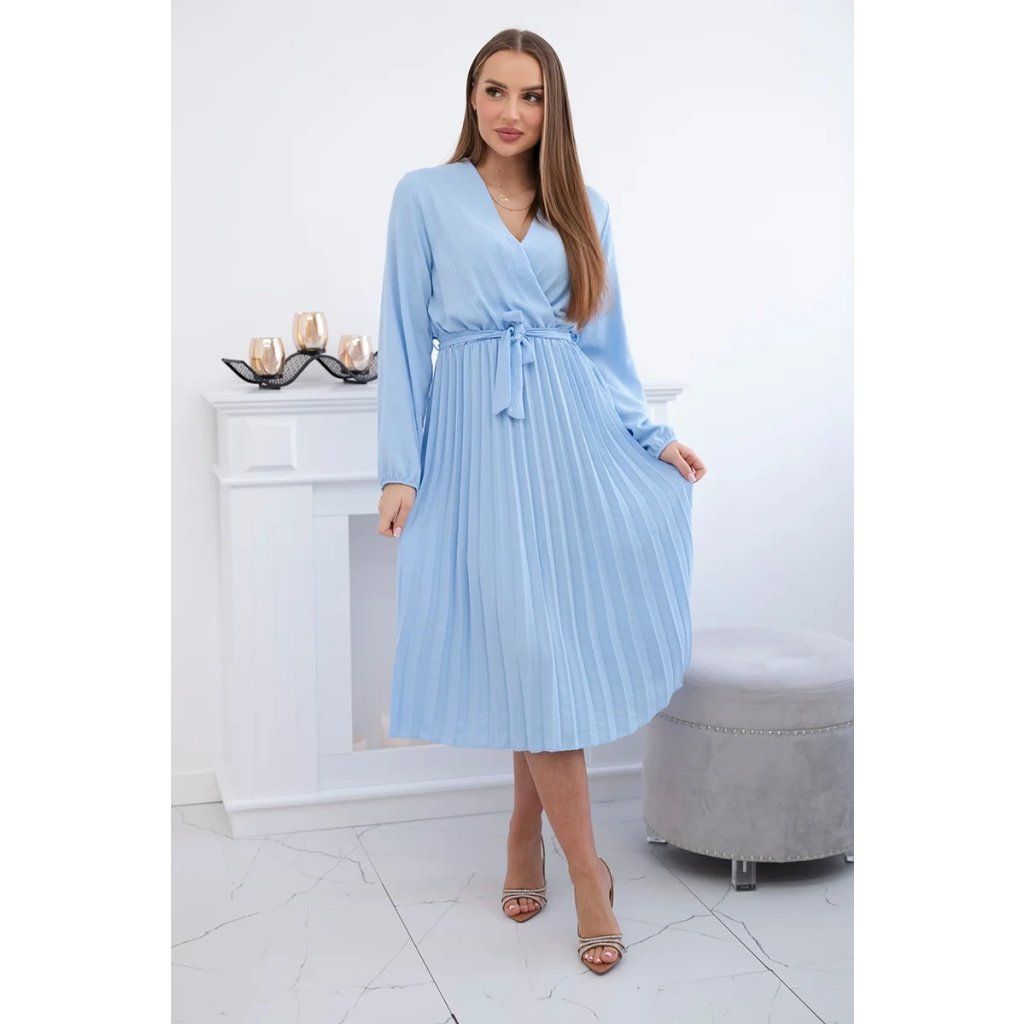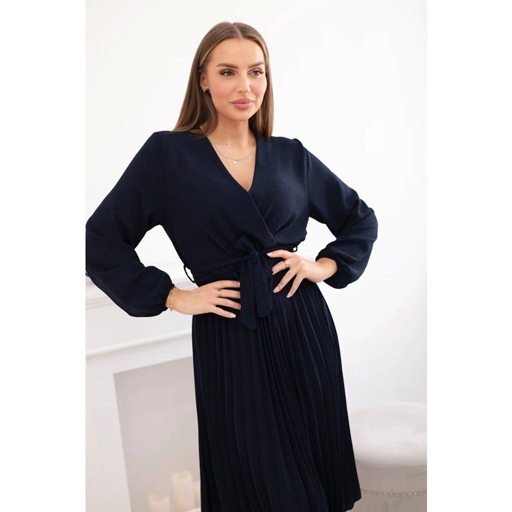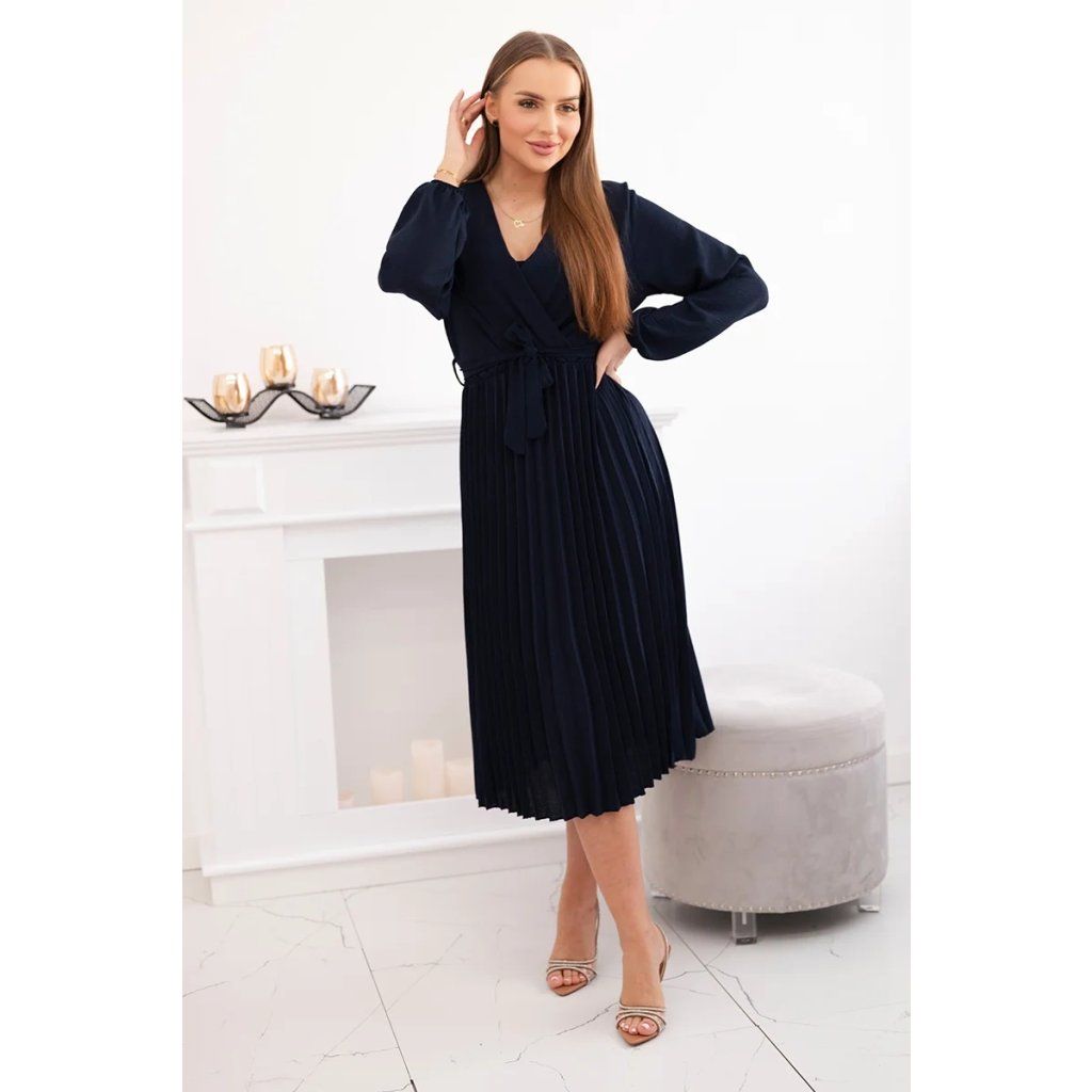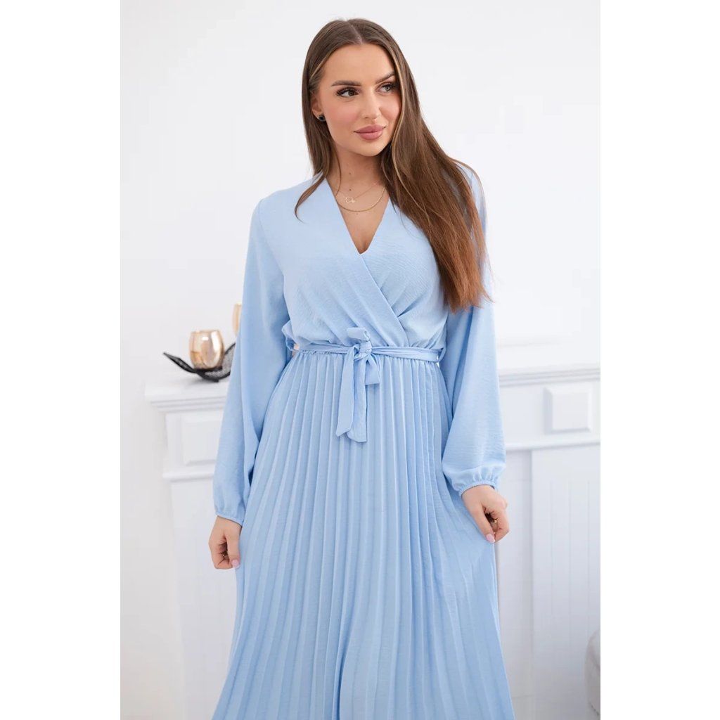Zavazovací šaty s nabíraným spodkem jsou módním a elegantním kouskem oděvu, který v sobě snoubí jemnost a rafinovanost. V horní části šatů je zavazování, které jim dodává jemnost a šarm. Spodní část šatů je z plisované látky a dodává celému vzhledu lehkost a sofistikovanost. Záhyby dodávají šatům elegantní pohyb a přidávají na objemu, díky čemuž se skvěle hodí pro různé příležitosti, od formálnějších až po ležérní. Tyto šaty se hodí k různým doplňkům a lze je nosit jak na letní večery, tak na slavnostnější události. Jedná se o elegantní volbu pro lidi, kteří oceňují módní vzhled a pohodlí v jednom.