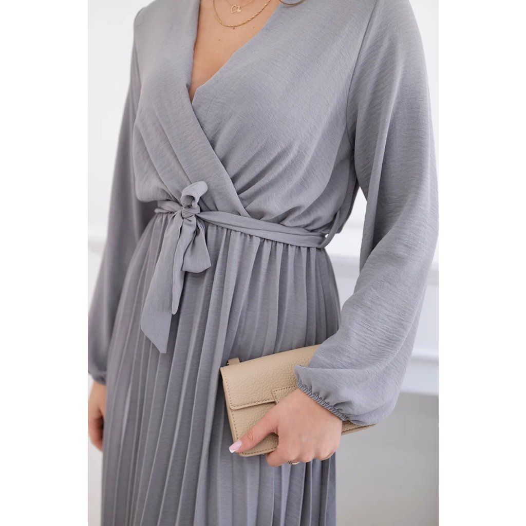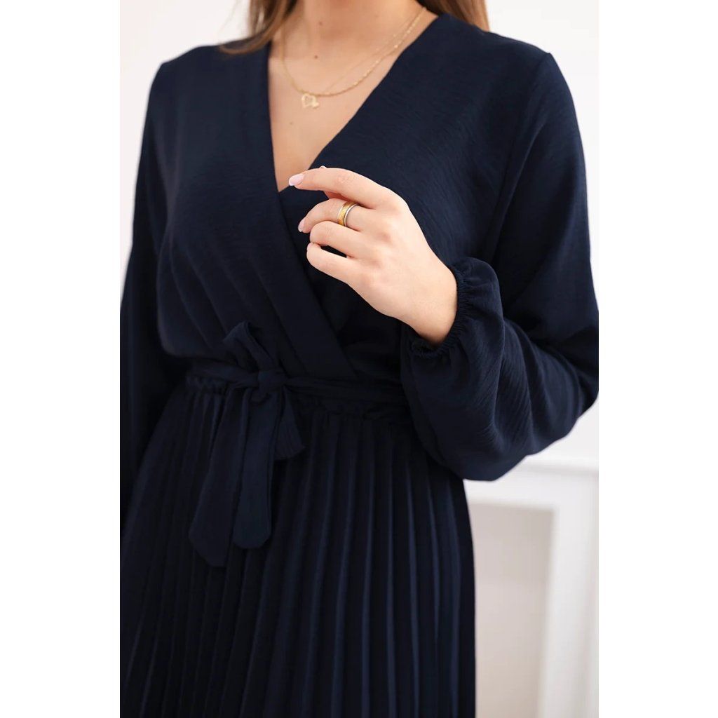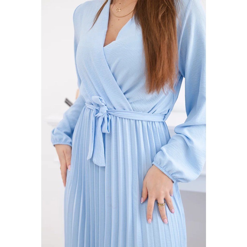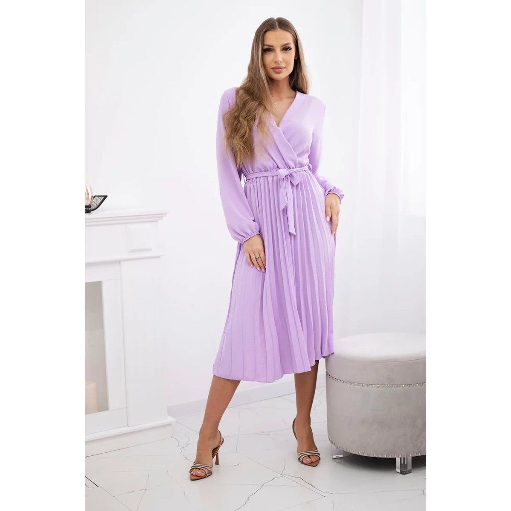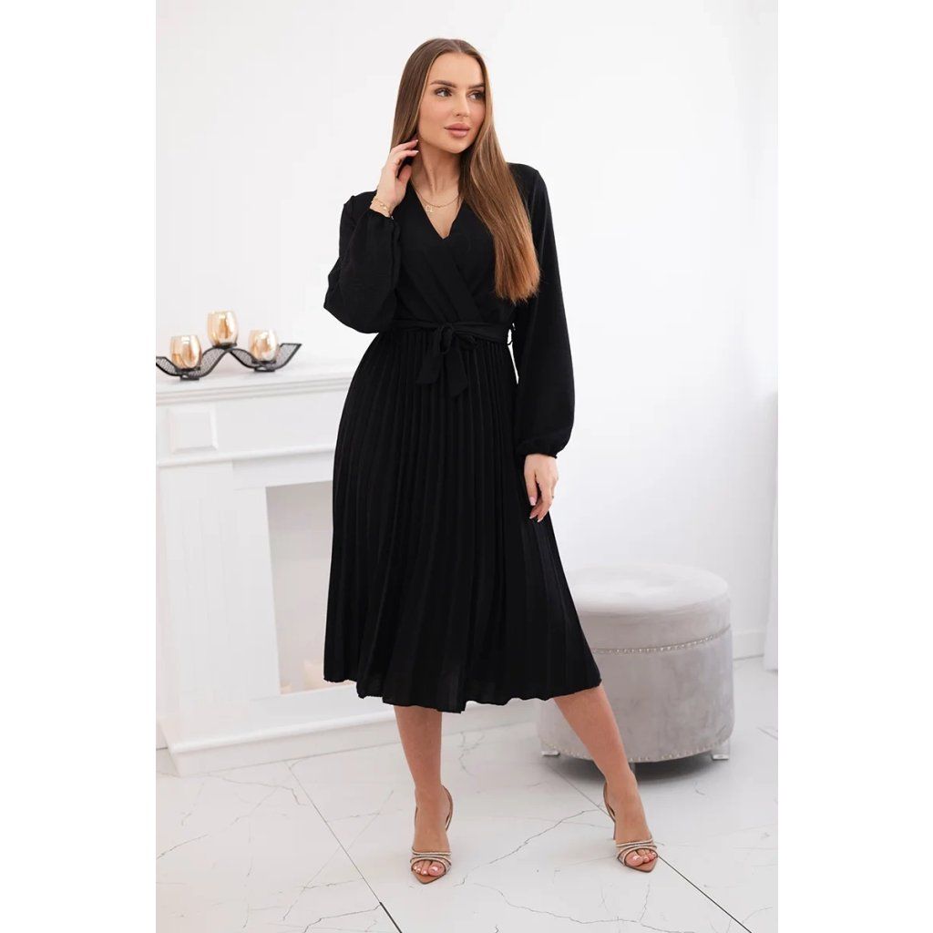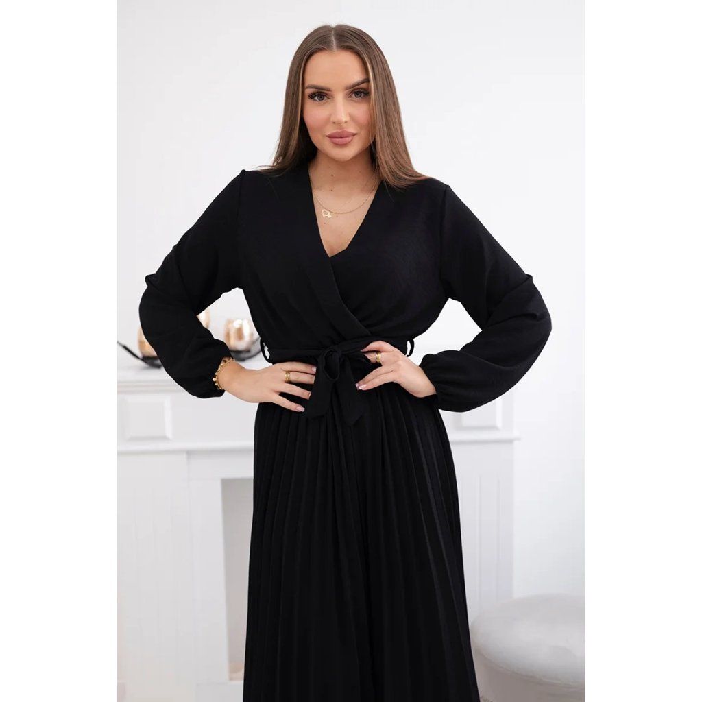 Zavazovací šaty s nabíraným spodkem jsou módním a elegantním kouskem oděvu, který v sobě snoubí jemnost a rafinovanost. V horní části šatů je zavazování, které jim dodává jemnost a šarm. Spodní část šatů je z plisované látky a dodává celému vzhledu lehkost a sofistikovanost. Záhyby dodávají šatům elegantní pohyb a přidávají na objemu, díky čemuž se skvěle hodí pro různé příležitosti, od formálnějších až po ležérní. Tyto šaty se hodí k různým doplňkům a lze je nosit jak na letní večery, tak na slavnostnější události. Jedná se o elegantní volbu pro lidi, kteří oceňují módní vzhled a pohodlí v jednom.
