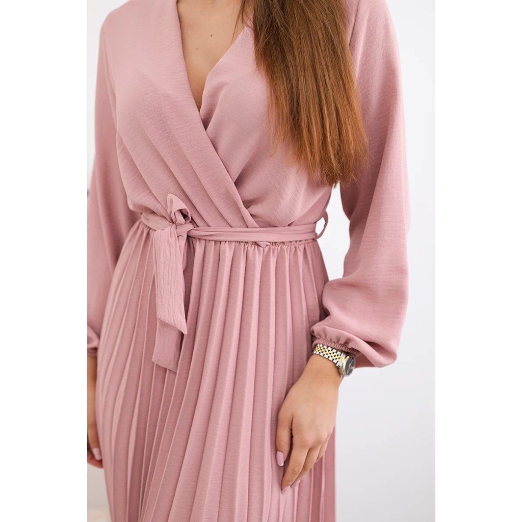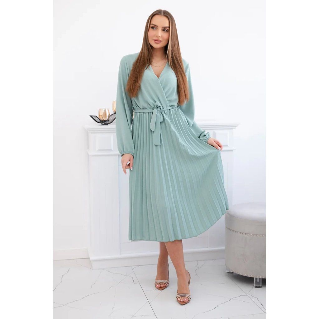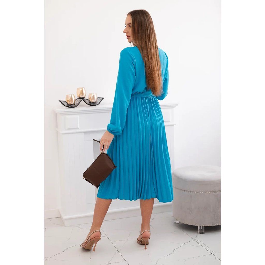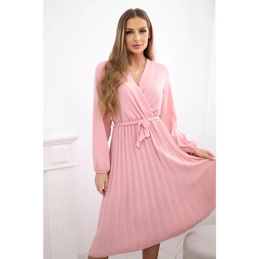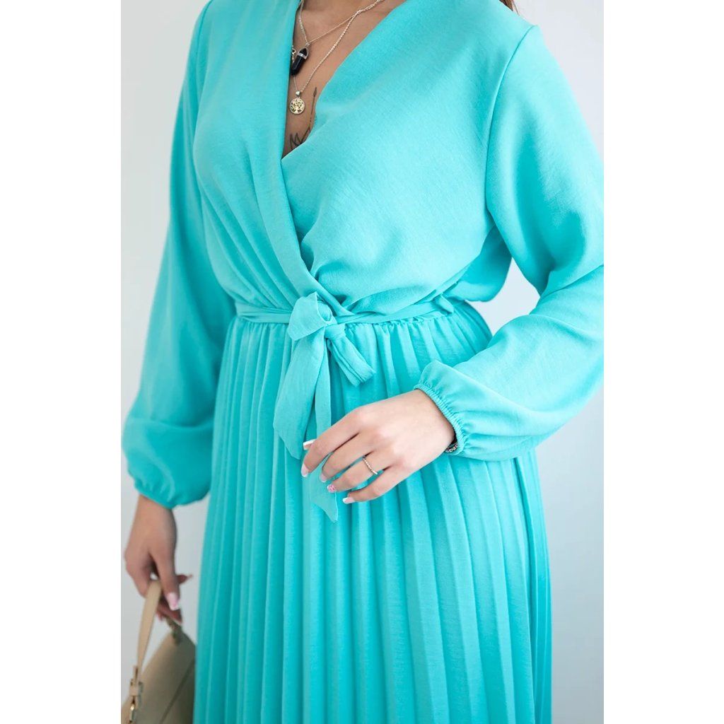 Zavazovací šaty s nabíraným spodkem jsou módním a elegantním kouskem oděvu, který v sobě snoubí jemnost a rafinovanost. V horní části šatů je zavazování, které jim dodává jemnost a šarm. Spodní část šatů je z plisované látky a dodává celému vzhledu lehkost a sofistikovanost. Záhyby dodávají šatům elegantní pohyb a přidávají na objemu, díky čemuž se skvěle hodí pro různé příležitosti, od formálnějších až po ležérní. Tyto šaty se hodí k různým doplňkům a lze je nosit jak na letní večery, tak na slavnostnější události. Jedná se o elegantní volbu pro lidi, kteří oceňují módní vzhled a pohodlí v jednom.