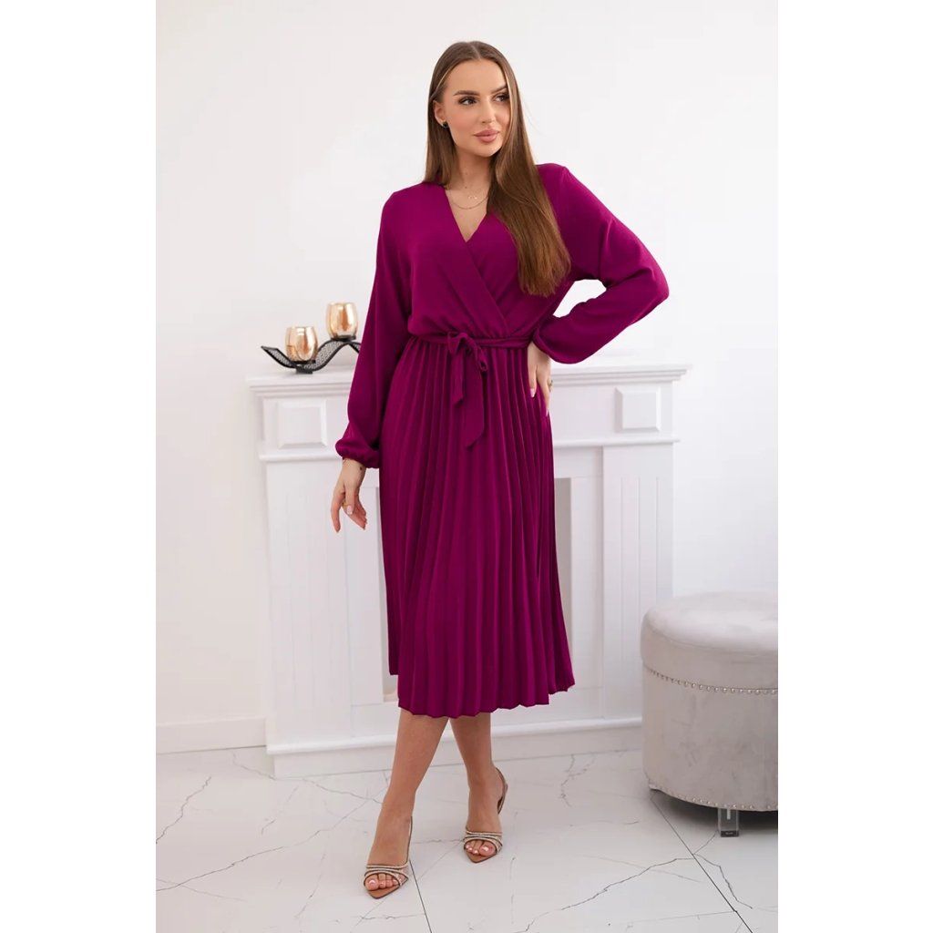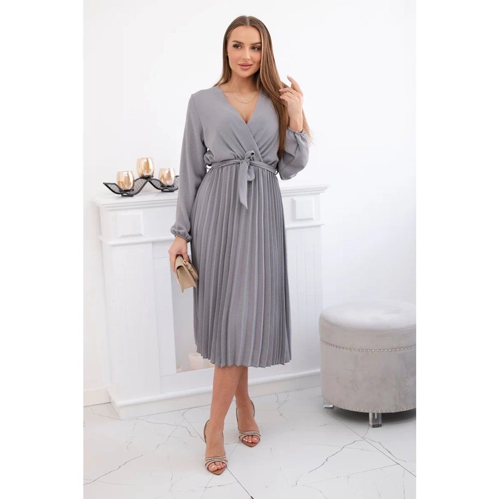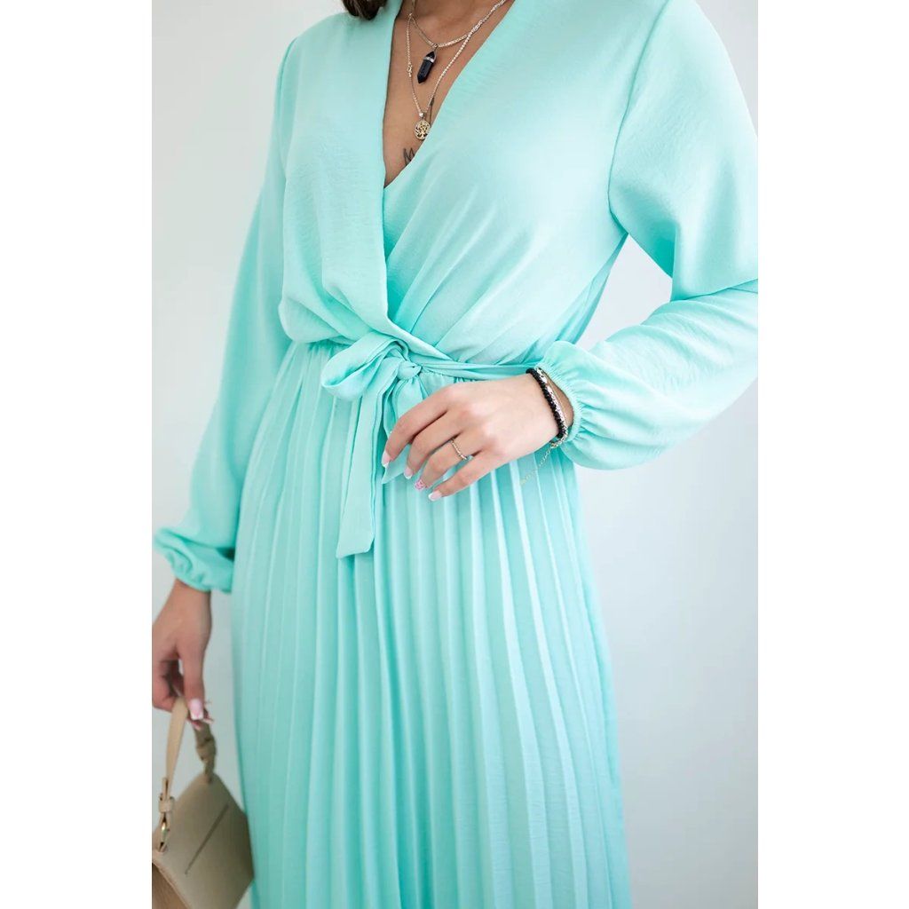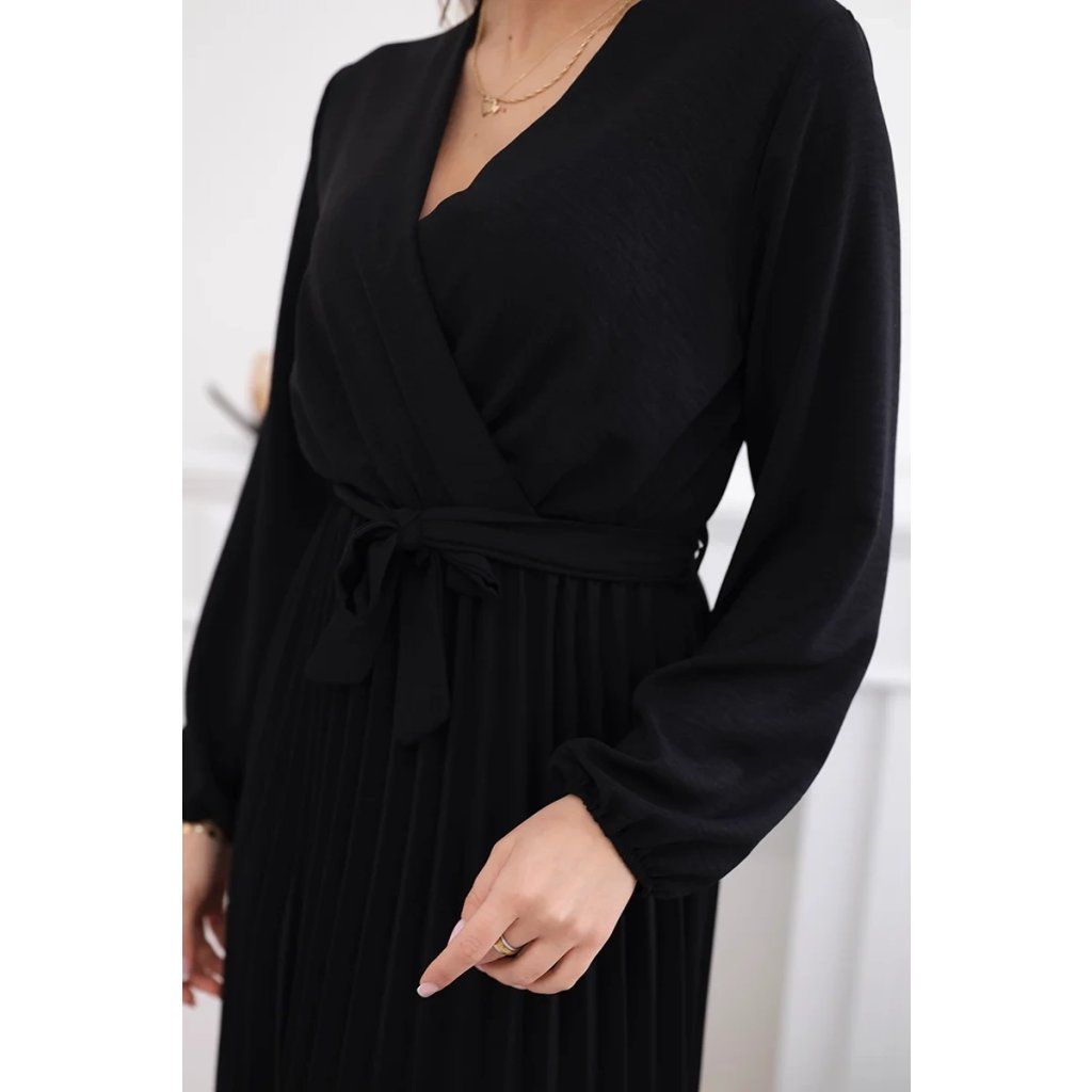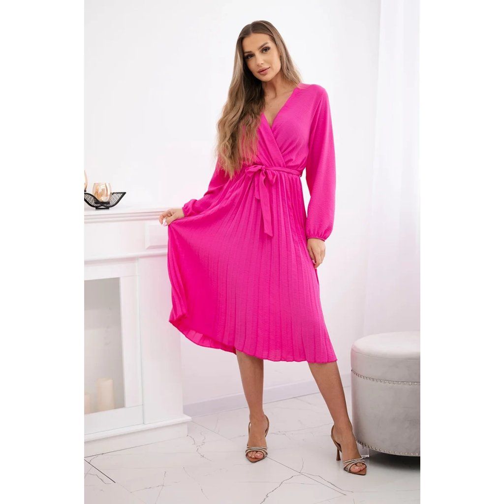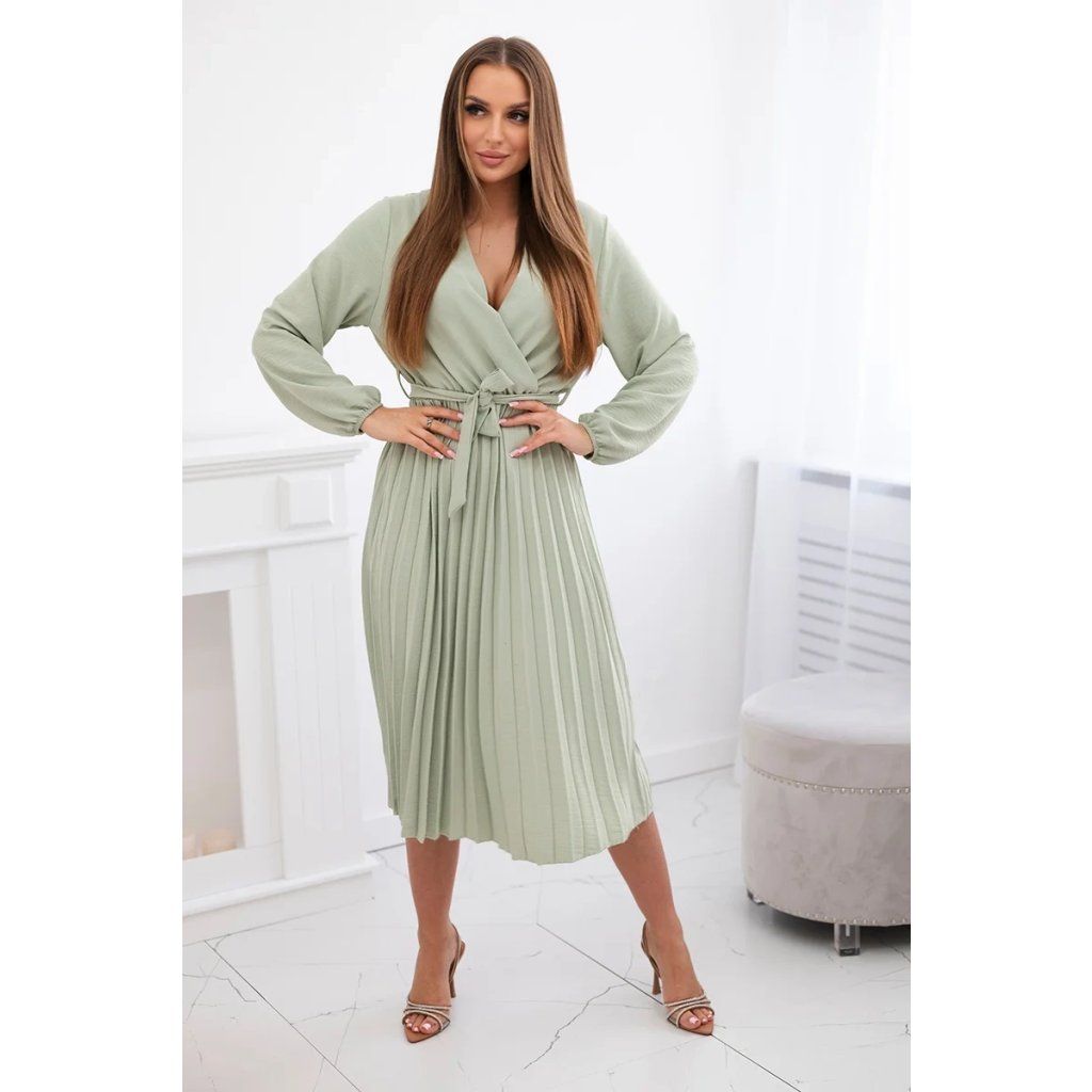 Zavazovací šaty s nabíraným spodkem jsou módním a elegantním kouskem oděvu, který v sobě snoubí jemnost a rafinovanost. V horní části šatů je zavazování, které jim dodává jemnost a šarm. Spodní část šatů je z plisované látky a dodává celému vzhledu lehkost a sofistikovanost. Záhyby dodávají šatům elegantní pohyb a přidávají na objemu, díky čemuž se skvěle hodí pro různé příležitosti, od formálnějších až po ležérní. Tyto šaty se hodí k různým doplňkům a lze je nosit jak na letní večery, tak na slavnostnější události. Jedná se o elegantní volbu pro lidi, kteří oceňují módní vzhled a pohodlí v jednom.