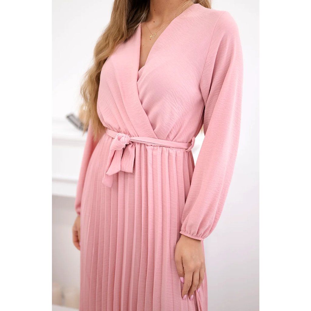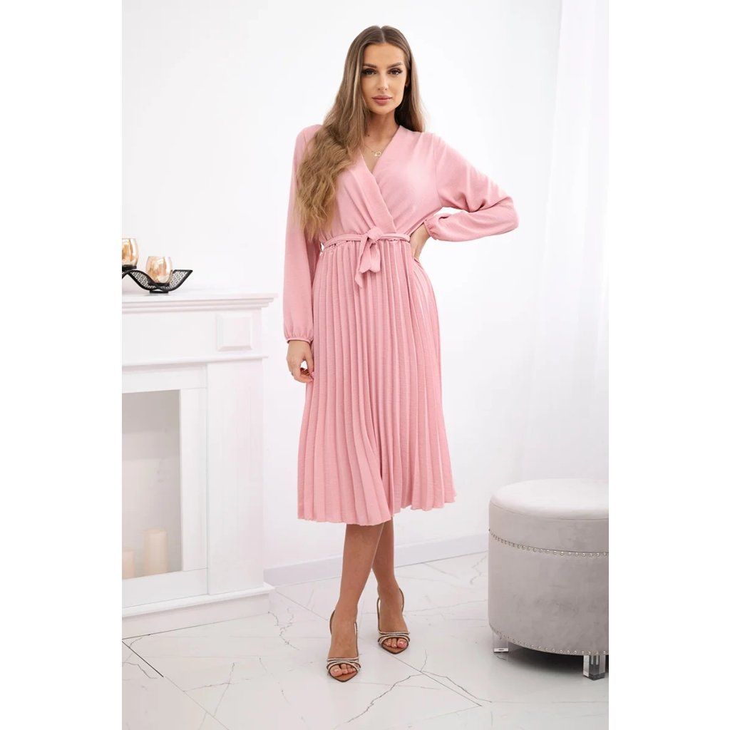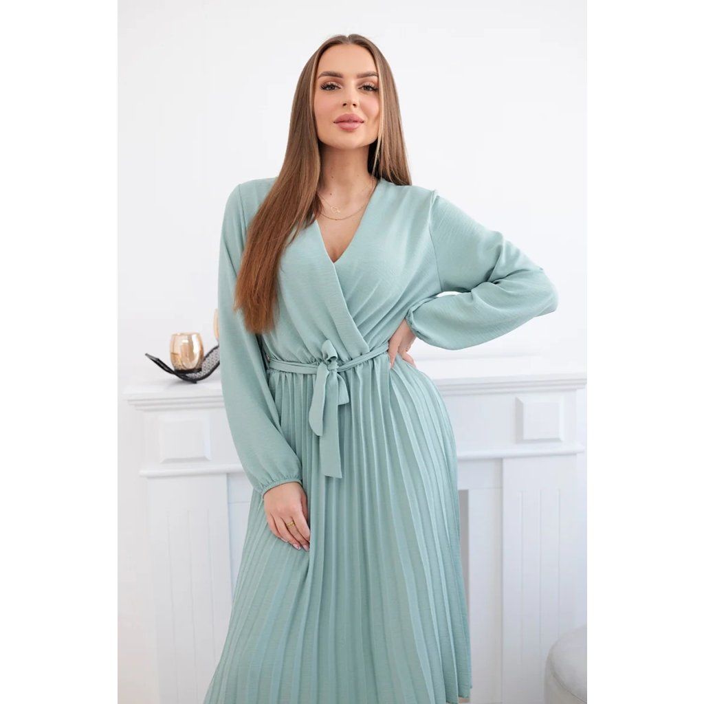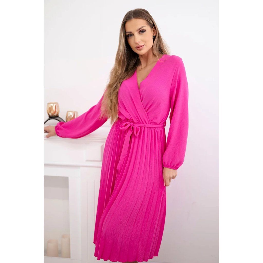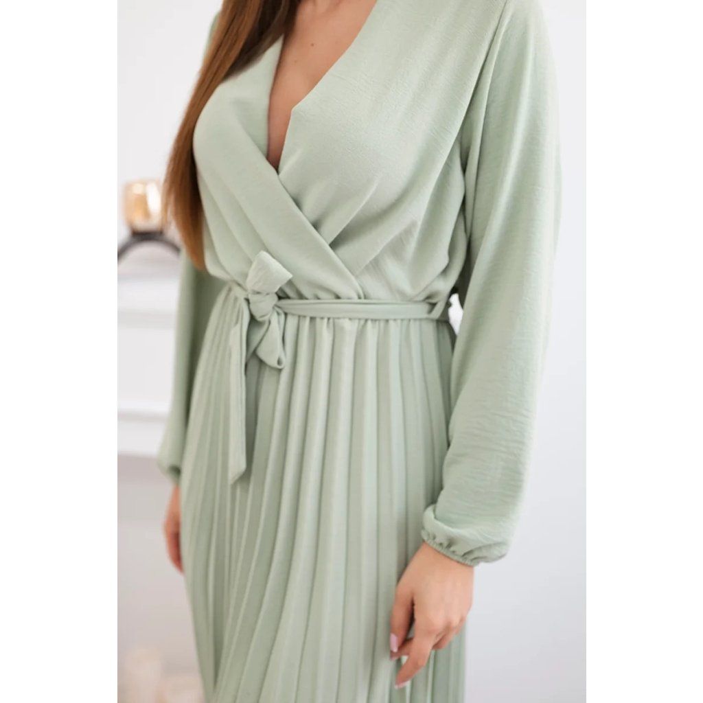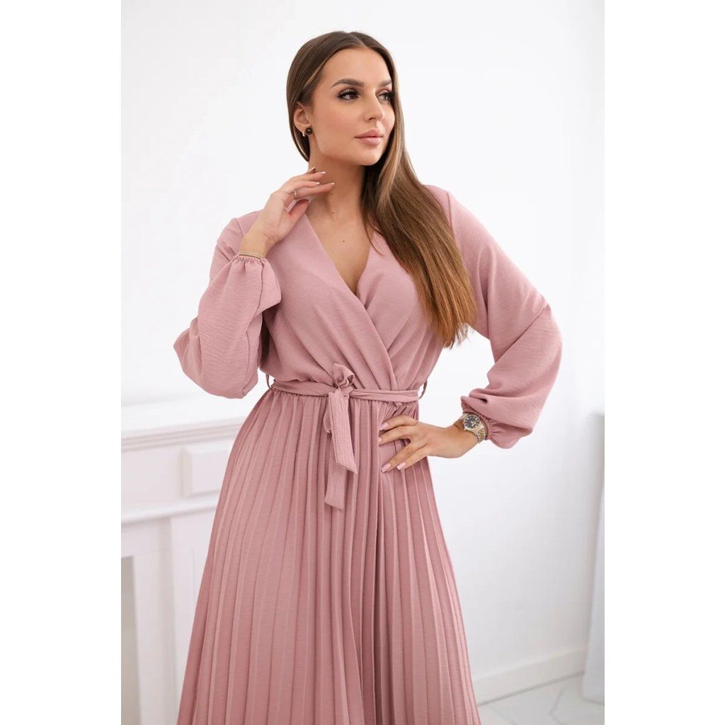 Zavazovací šaty s nabíraným spodkem jsou módním a elegantním kouskem oděvu, který v sobě snoubí jemnost a rafinovanost. V horní části šatů je zavazování, které jim dodává jemnost a šarm. Spodní část šatů je z plisované látky a dodává celému vzhledu lehkost a sofistikovanost. Záhyby dodávají šatům elegantní pohyb a přidávají na objemu, díky čemuž se skvěle hodí pro různé příležitosti, od formálnějších až po ležérní. Tyto šaty se hodí k různým doplňkům a lze je nosit jak na letní večery, tak na slavnostnější události. Jedná se o elegantní volbu pro lidi, kteří oceňují módní vzhled a pohodlí v jednom.