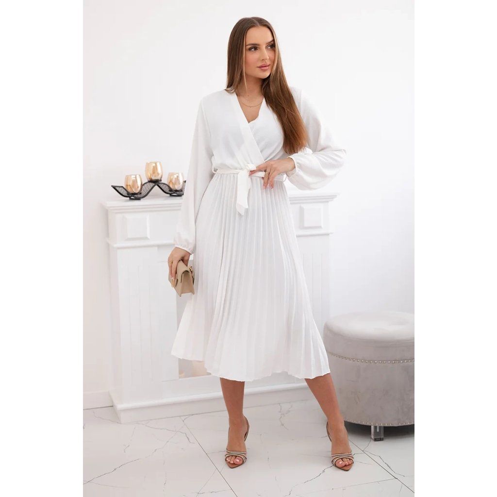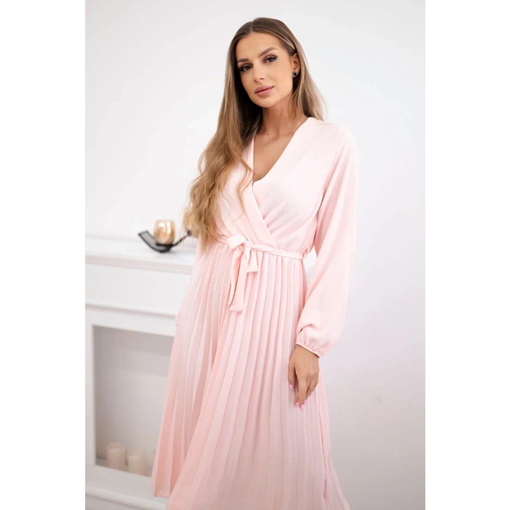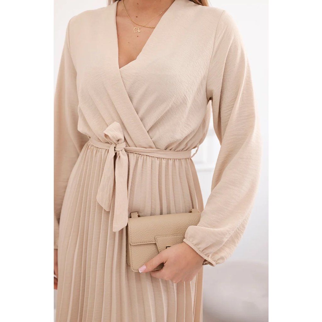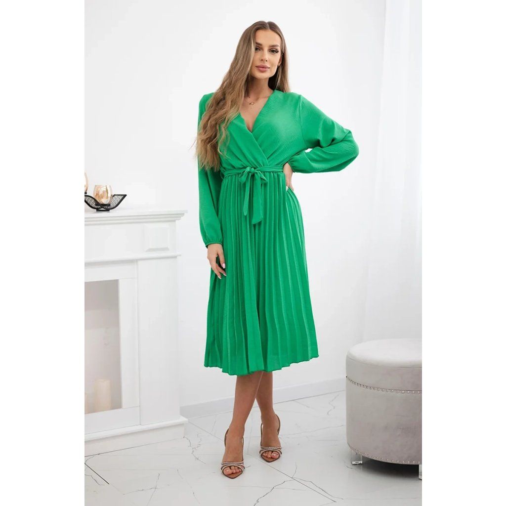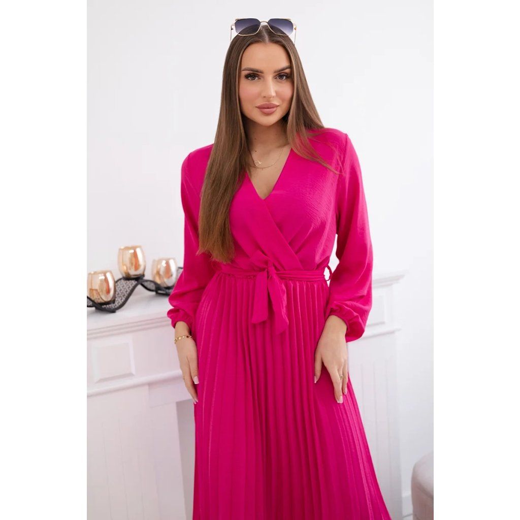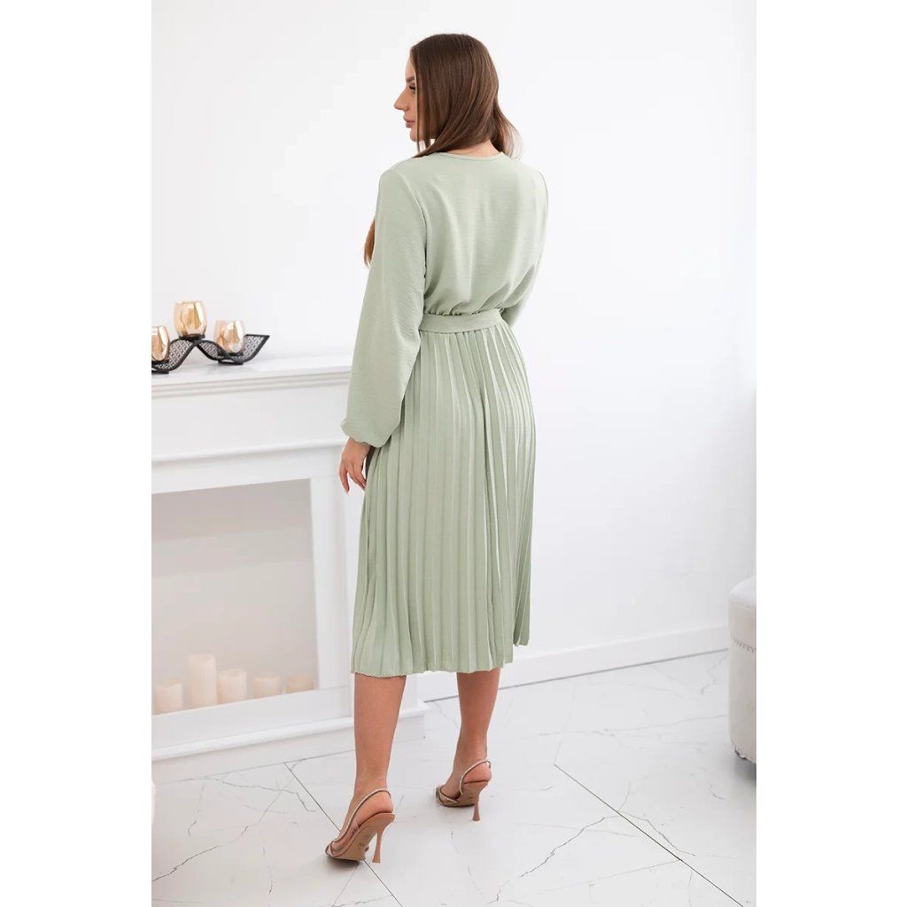 Zavazovací šaty s nabíraným spodkem jsou módním a elegantním kouskem oděvu, který v sobě snoubí jemnost a rafinovanost. V horní části šatů je zavazování, které jim dodává jemnost a šarm. Spodní část šatů je z plisované látky a dodává celému vzhledu lehkost a sofistikovanost. Záhyby dodávají šatům elegantní pohyb a přidávají na objemu, díky čemuž se skvěle hodí pro různé příležitosti, od formálnějších až po ležérní. Tyto šaty se hodí k různým doplňkům a lze je nosit jak na letní večery, tak na slavnostnější události. Jedná se o elegantní volbu pro lidi, kteří oceňují módní vzhled a pohodlí v jednom.