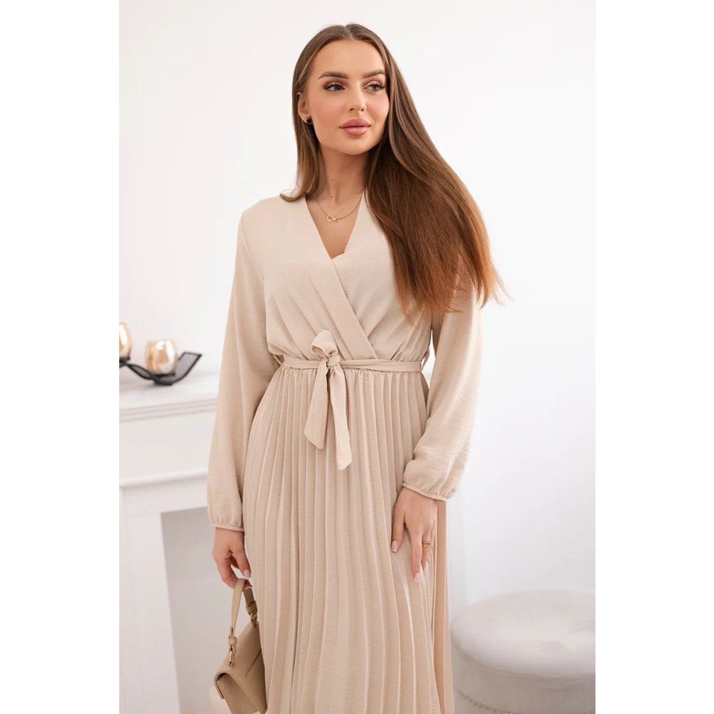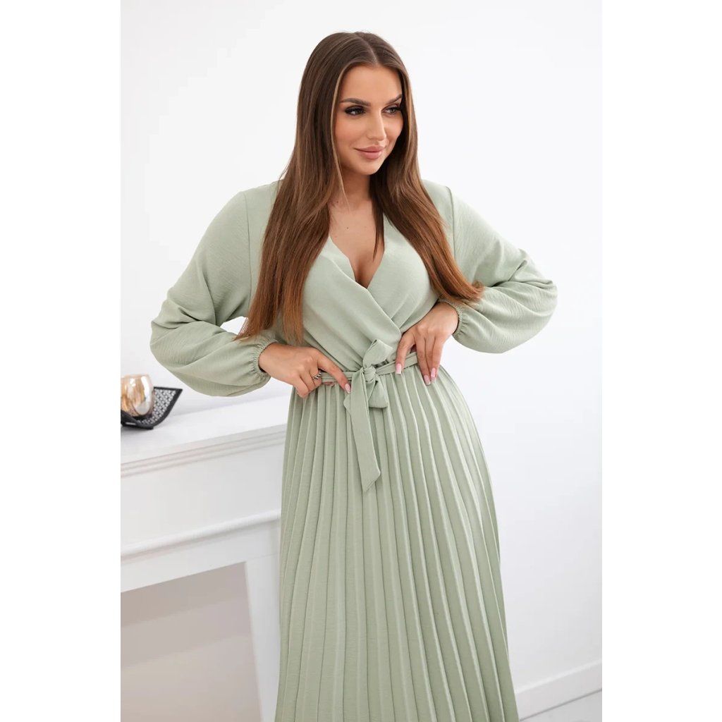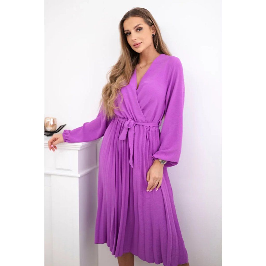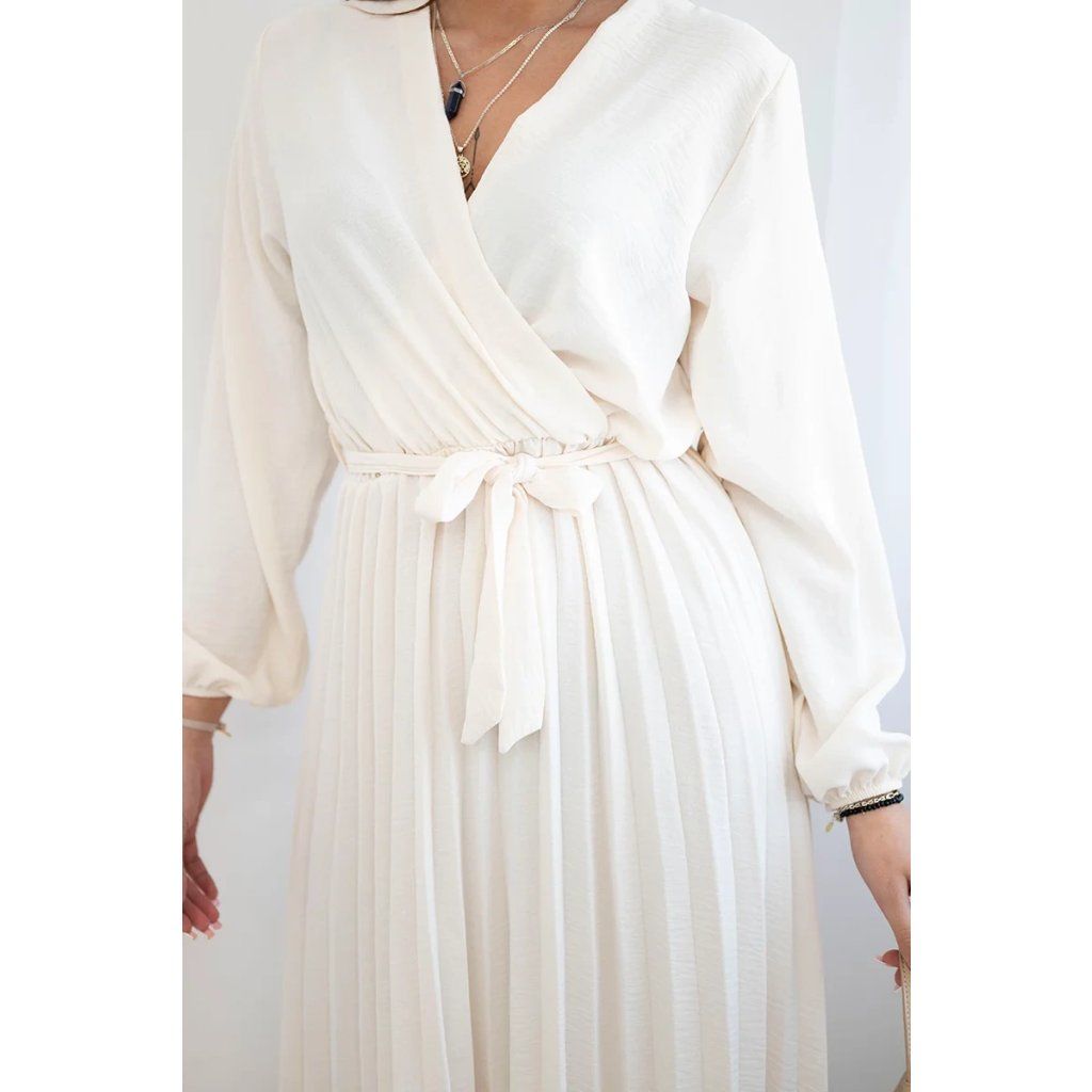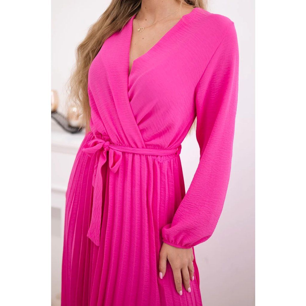 Zavazovací šaty s nabíraným spodkem jsou módním a elegantním kouskem oděvu, který v sobě snoubí jemnost a rafinovanost. V horní části šatů je zavazování, které jim dodává jemnost a šarm. Spodní část šatů je z plisované látky a dodává celému vzhledu lehkost a sofistikovanost. Záhyby dodávají šatům elegantní pohyb a přidávají na objemu, díky čemuž se skvěle hodí pro různé příležitosti, od formálnějších až po ležérní. Tyto šaty se hodí k různým doplňkům a lze je nosit jak na letní večery, tak na slavnostnější události. Jedná se o elegantní volbu pro lidi, kteří oceňují módní vzhled a pohodlí v jednom.