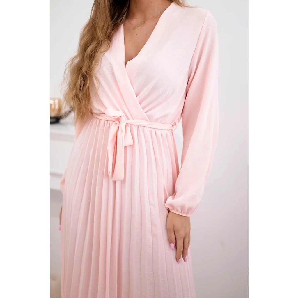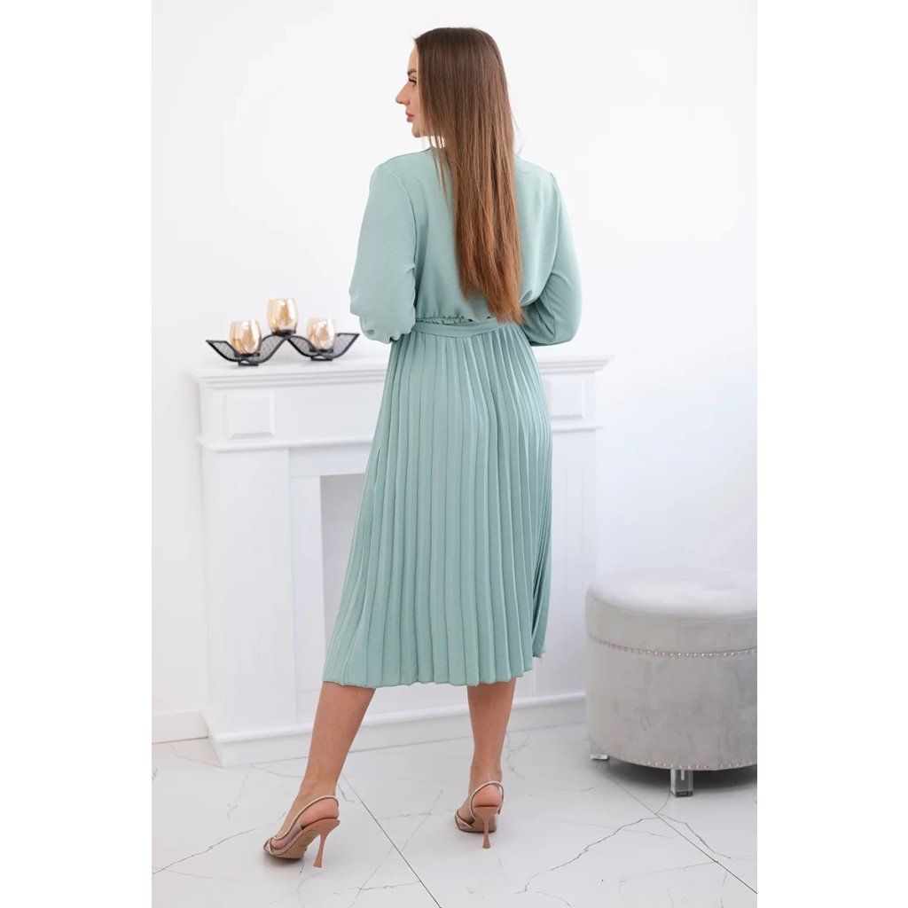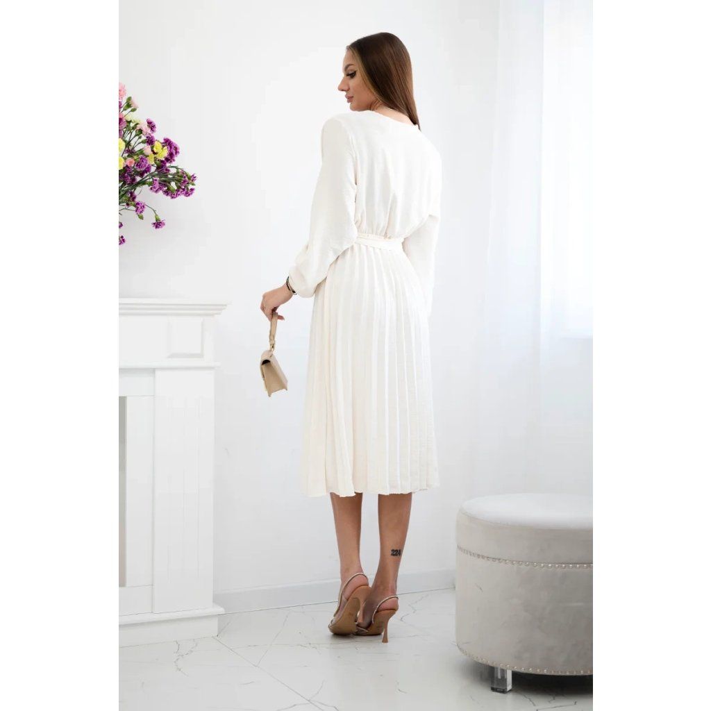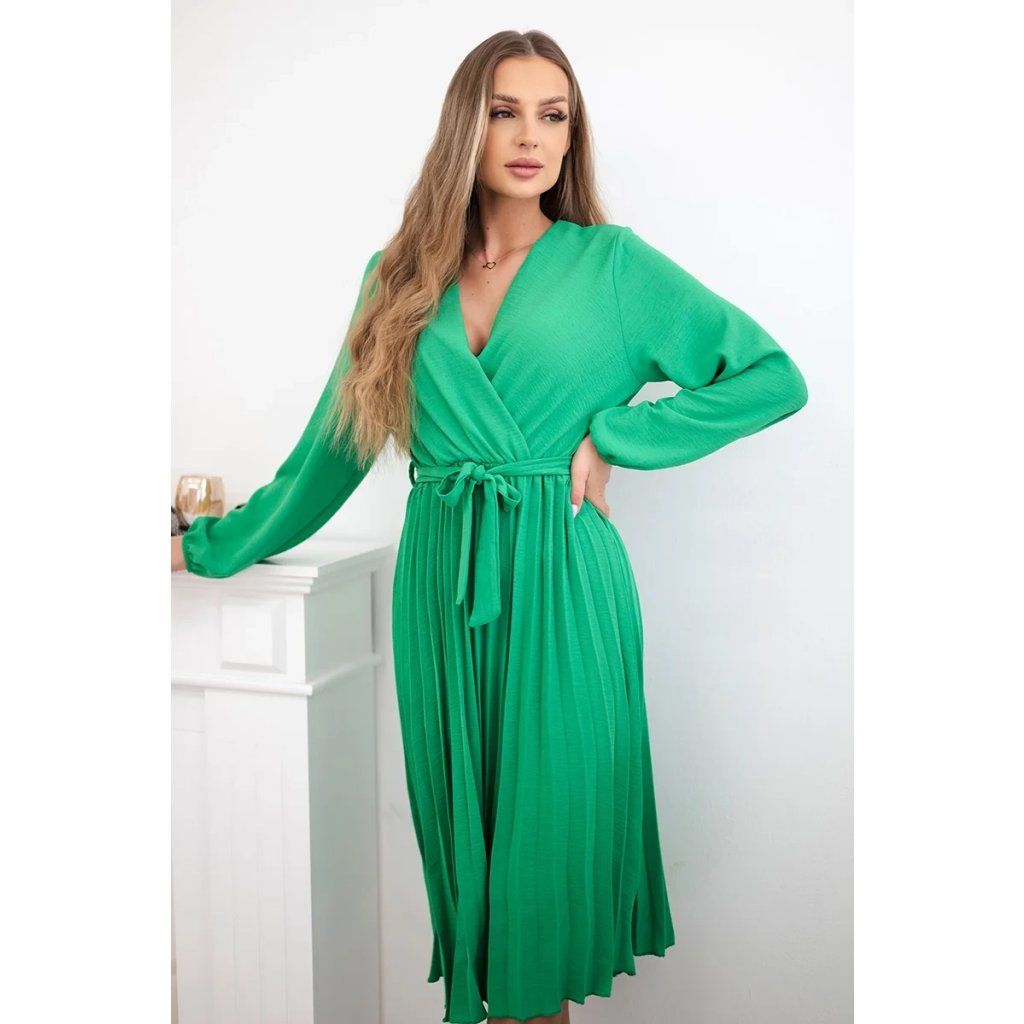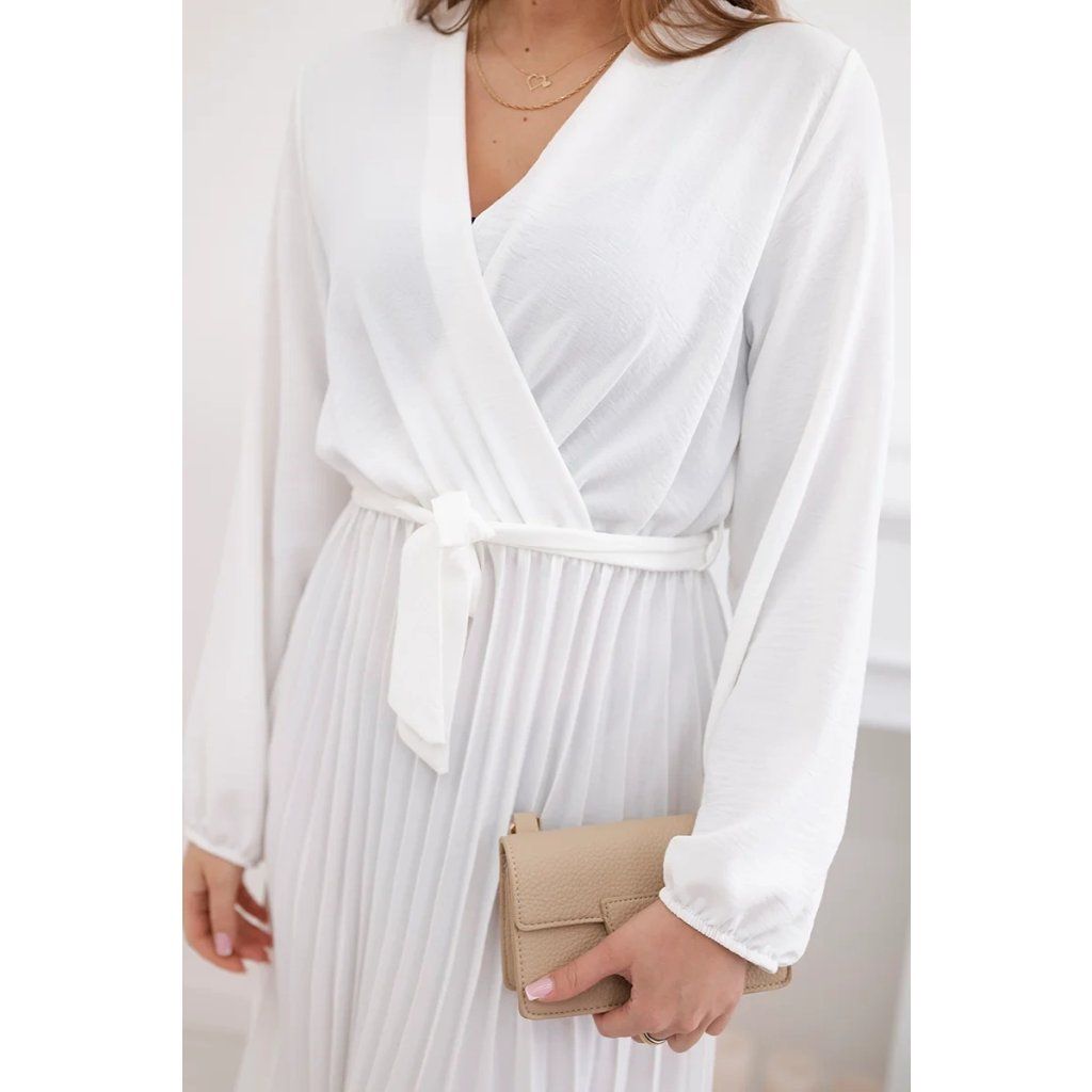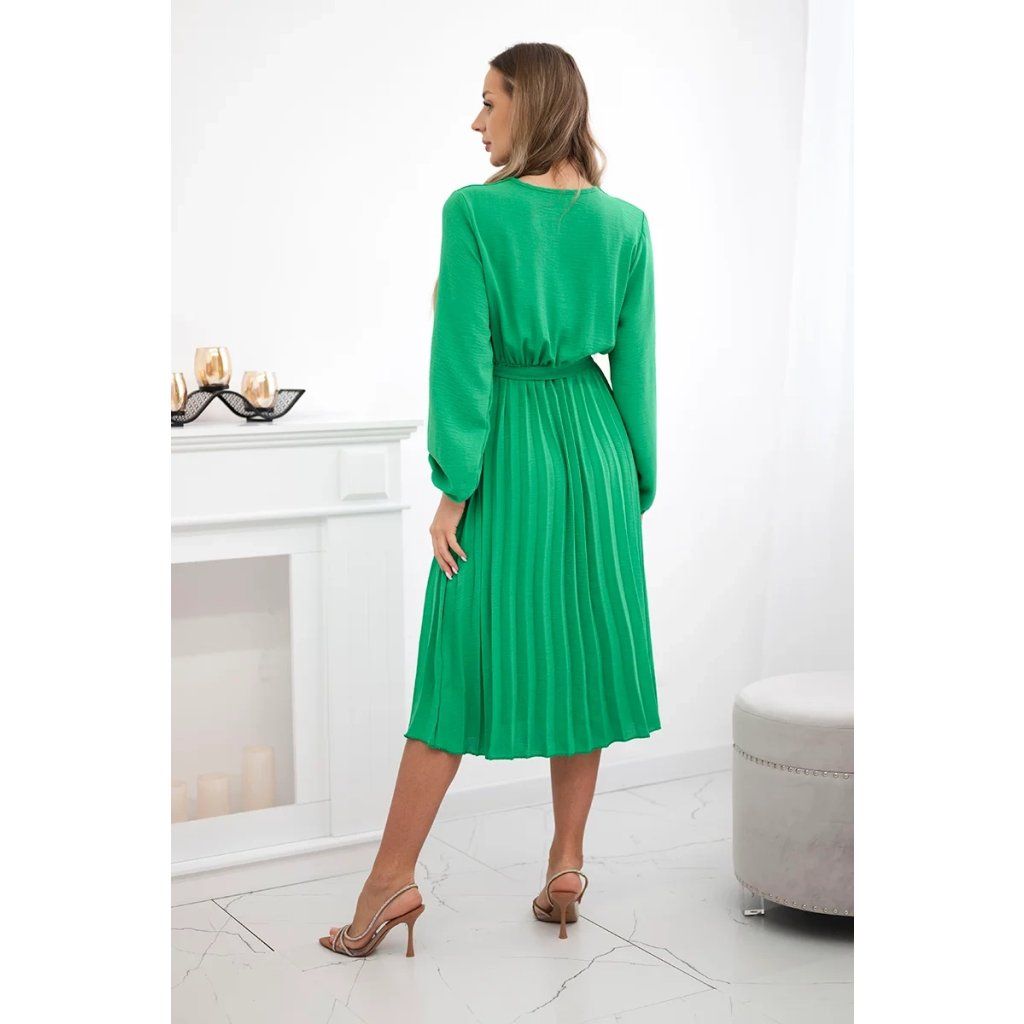 Zavazovací šaty s nabíraným spodkem jsou módním a elegantním kouskem oděvu, který v sobě snoubí jemnost a rafinovanost. V horní části šatů je zavazování, které jim dodává jemnost a šarm. Spodní část šatů je z plisované látky a dodává celému vzhledu lehkost a sofistikovanost. Záhyby dodávají šatům elegantní pohyb a přidávají na objemu, díky čemuž se skvěle hodí pro různé příležitosti, od formálnějších až po ležérní. Tyto šaty se hodí k různým doplňkům a lze je nosit jak na letní večery, tak na slavnostnější události. Jedná se o elegantní volbu pro lidi, kteří oceňují módní vzhled a pohodlí v jednom.