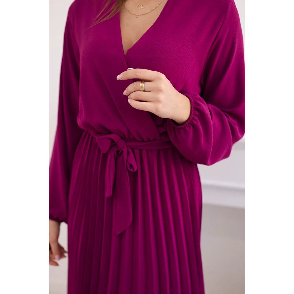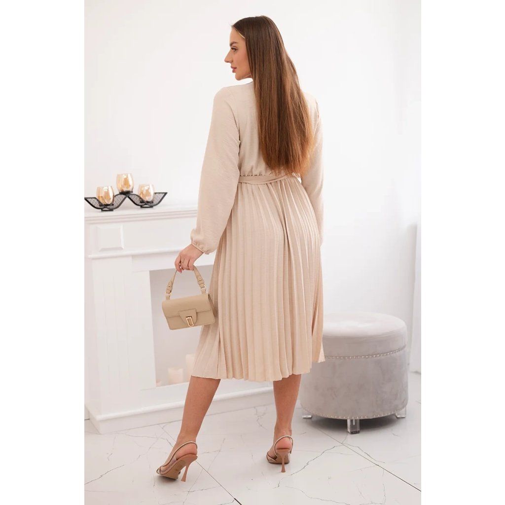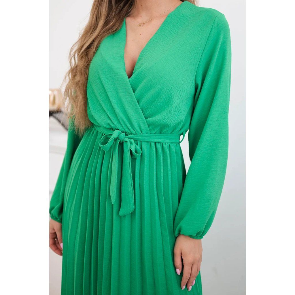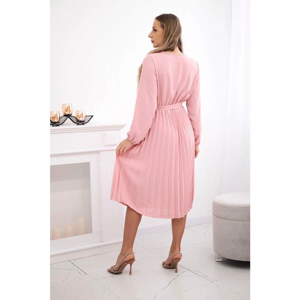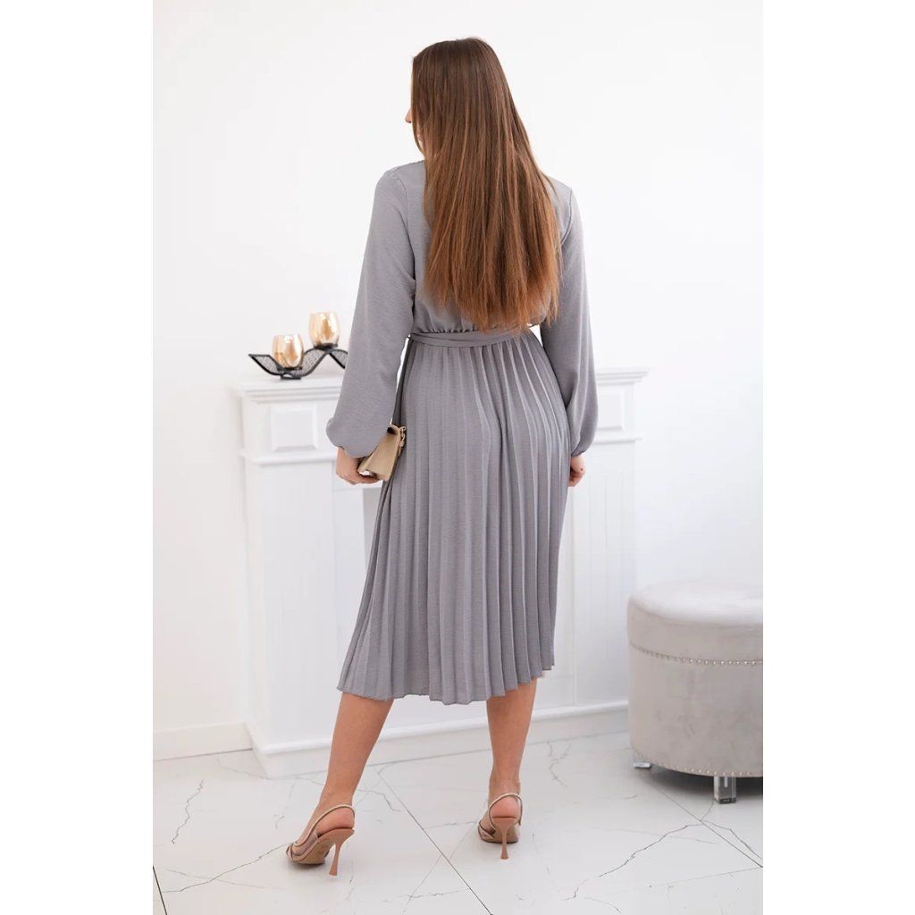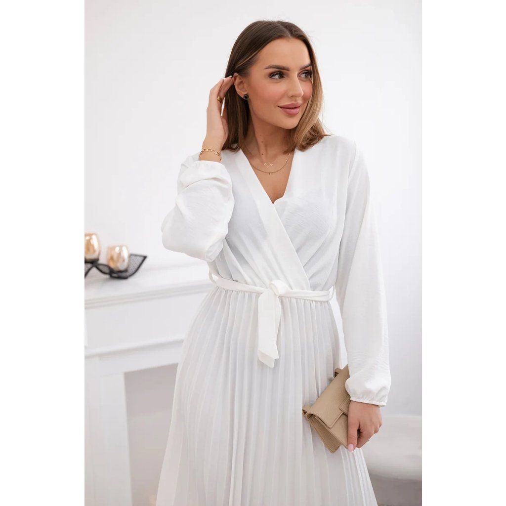 Zavazovací šaty s nabíraným spodkem jsou módním a elegantním kouskem oděvu, který v sobě snoubí jemnost a rafinovanost. V horní části šatů je zavazování, které jim dodává jemnost a šarm. Spodní část šatů je z plisované látky a dodává celému vzhledu lehkost a sofistikovanost. Záhyby dodávají šatům elegantní pohyb a přidávají na objemu, díky čemuž se skvěle hodí pro různé příležitosti, od formálnějších až po ležérní. Tyto šaty se hodí k různým doplňkům a lze je nosit jak na letní večery, tak na slavnostnější události. Jedná se o elegantní volbu pro lidi, kteří oceňují módní vzhled a pohodlí v jednom.