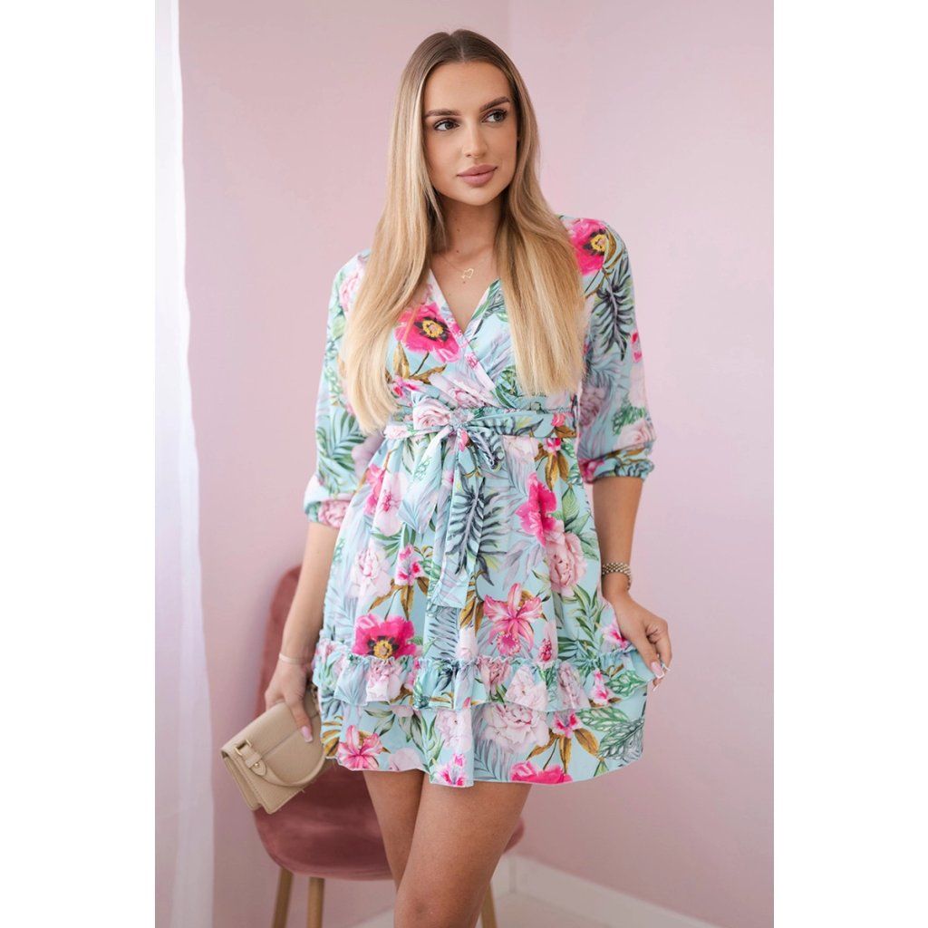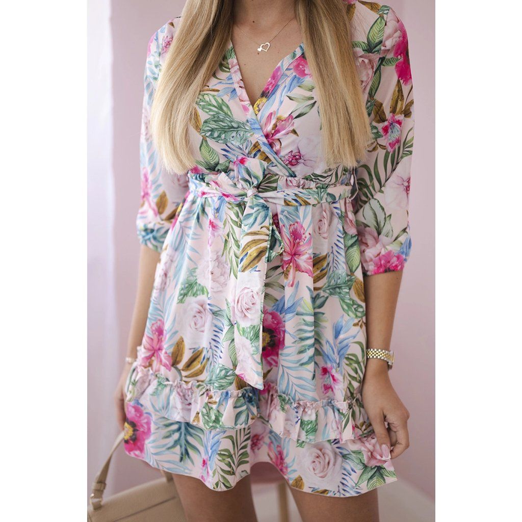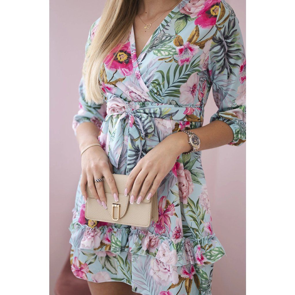 Představujeme vám pohodlné květinové šaty. Šaty s vázáním v pase a výstřihem do V. Velmi módní střih. Šaty jsou vyrobeny z vysoce kvalitního materiálu. Velikost je univerzální a vyhovuje dámám, které nosí velikost S, M nebo L.