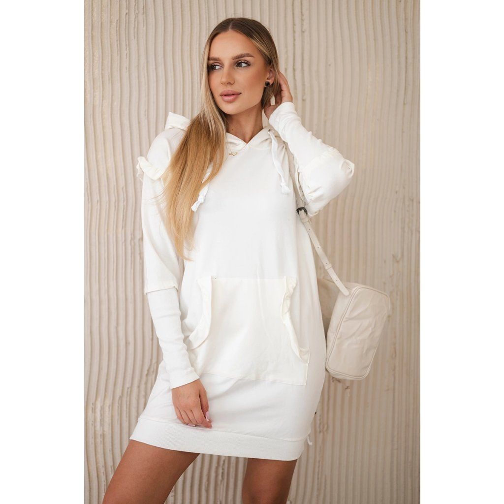 Představujeme vám módní šaty. Šaty mají kapuci a kapsu na přední straně. Šaty mají ozdobné volánky na rukávech a na kapse. Ideální každodenní poloha. Šaty jsou vyrobeny z vysoce kvalitního materiálu. Velikost je univerzální a vyhovuje dámám, které nosí velikost M, L nebo XL