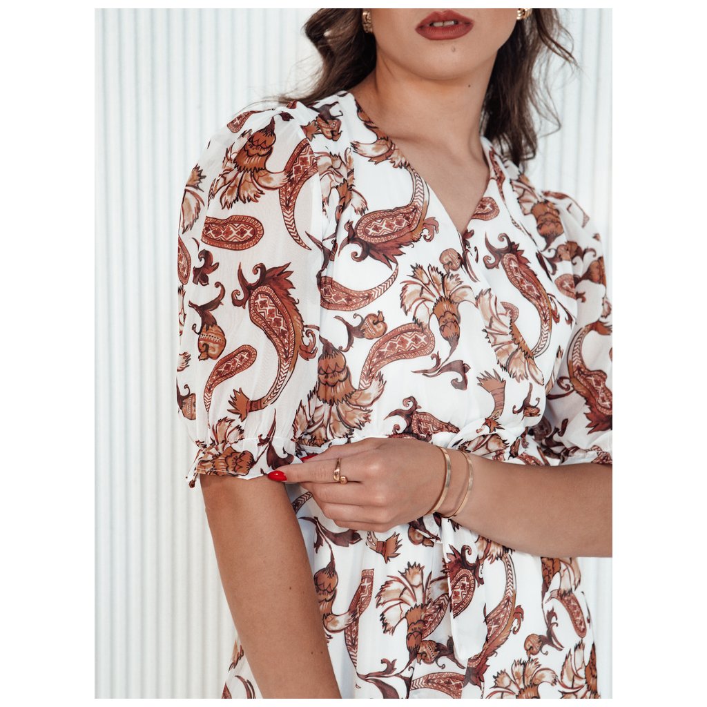 Úžasné a fenomenální – to je nejlepší popis šatů CELESTIA. Díky svému jedinečnému designu jsou ideální jak pro zvláštní příležitosti, tak pro každodenní nošení. Šaty mají výstřih do V, který zdůrazňuje ženské rysy, a jsou podšité pro větší pohodlí. Elastický pas a detail zavazování krásně zvýrazňují pas a vytvářejí harmonickou siluetu. Materiál šatů je nejen krásný, ale také měkký na dotek, takže jsou perfektní volbou pro každou příležitost. Jsou to absolutní nutnost ve vašem šatníku!