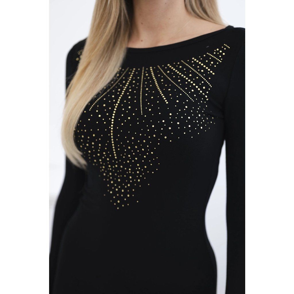 Pletené šaty se zlatým zirkonovým motivem