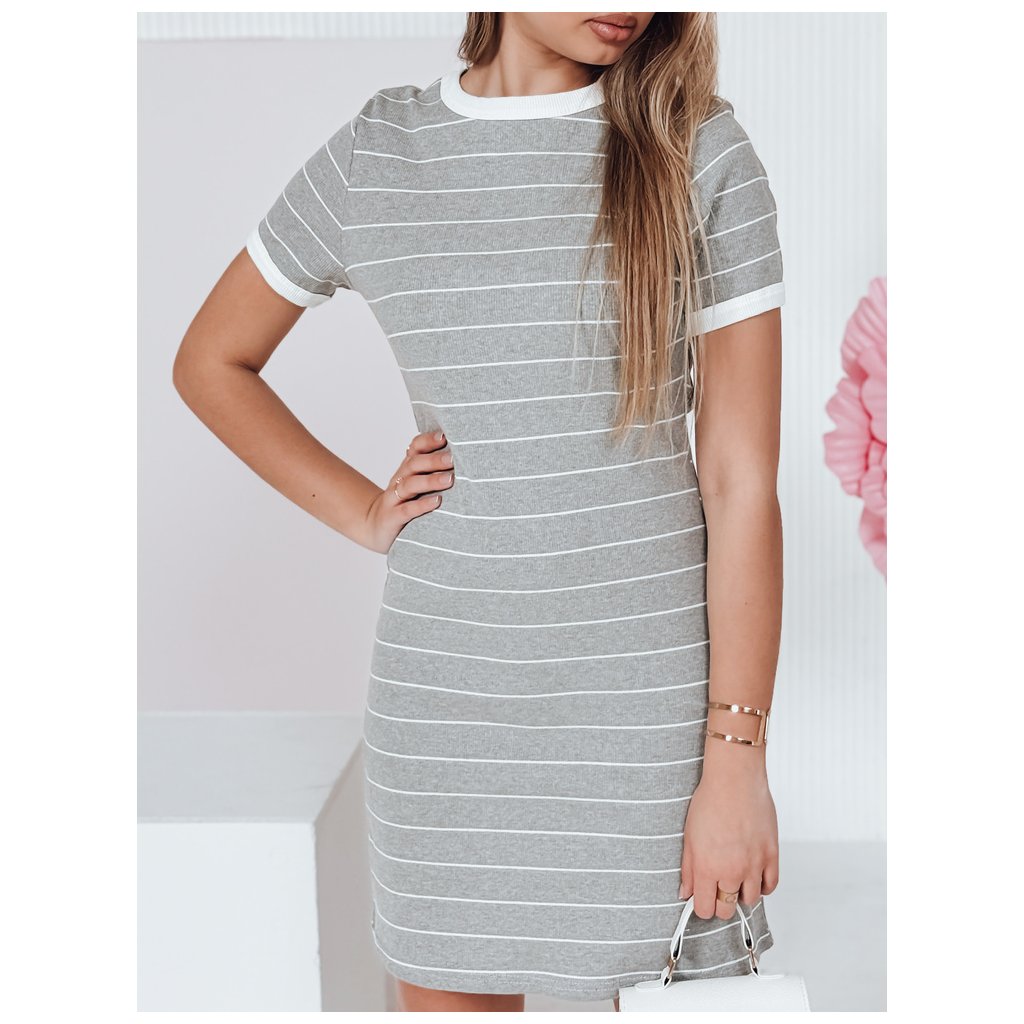 Tyto žebrované minišaty s krátkým rukávem jsou perfektní volbou pro každodenní styling. Přiléhavý střih lichotí postavě a pružná látka zajišťuje pohodlí. Kulatý výstřih a pruhovaný vzor dodávají šatům nadčasový nádech. Ideální pro ležérní outfity v teplejším počasí.