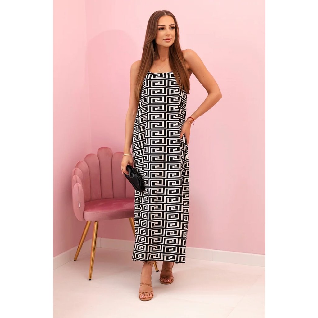 Tato výjimečné dámské šaty na ramínka jsou ideální volbou pro letní dny, výlety do města nebo prázdninové procházky. Okouzlují nejen originálním geometrickým vzorem ve stylu řeckého labyrintu, ale také svou jednoduchostí a pohodlím při nošení. Volný maxi střih zajišťuje volnost pohybu a tenká ramínka dodávají celé stylizaci lehkost. Vyrobené z měkkého a příjemného materiálu s přídavkem elastanu se šaty perfektně přizpůsobí postavě. Můžete je kombinovat jak se sandály, tak s teniskami a vytvořit stylový, každodenní outfit. Velikost je univerzální a hodí se pro dámy velikosti S, M nebo L.