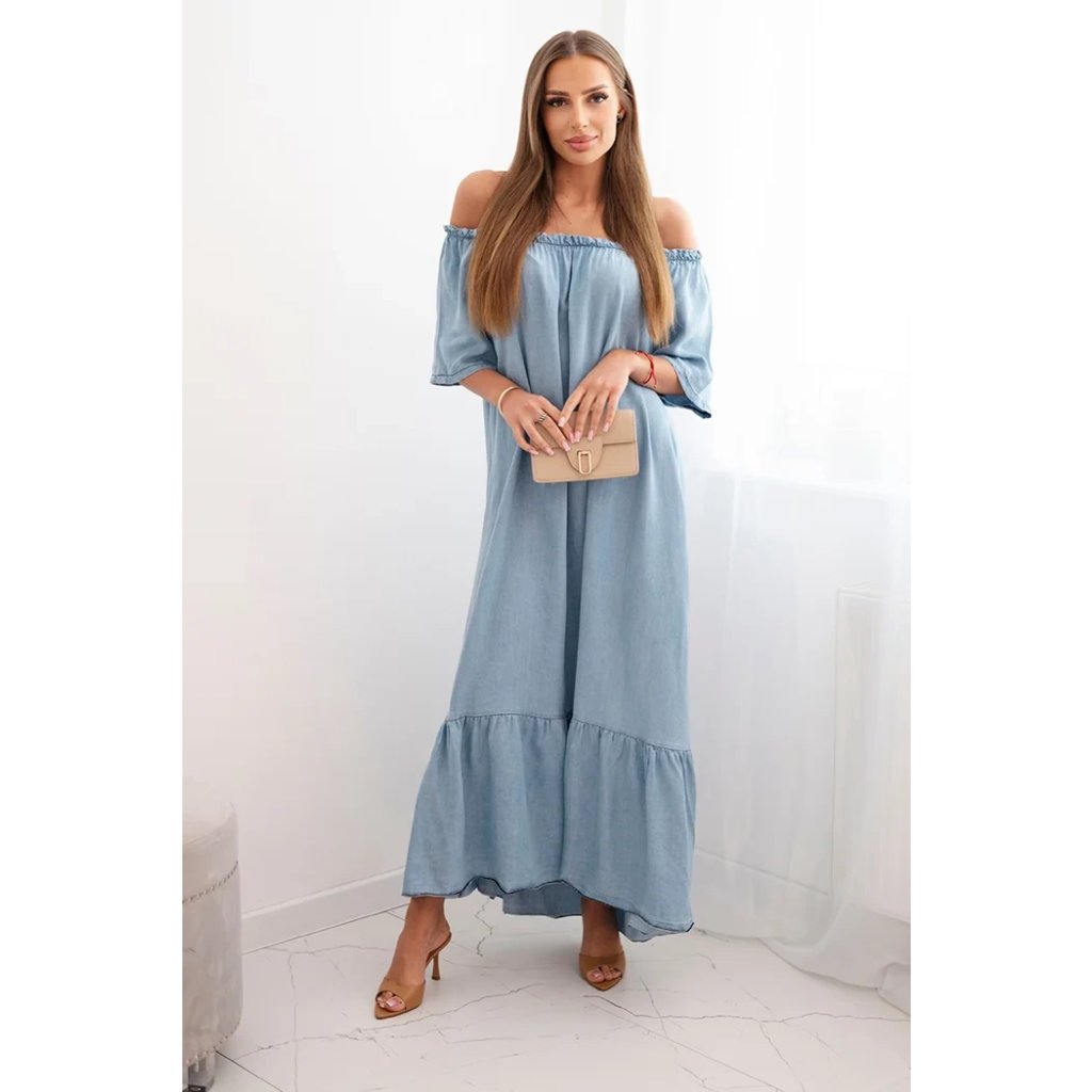 Dámské šaty s krátkým rukávem a volánky světlý denim