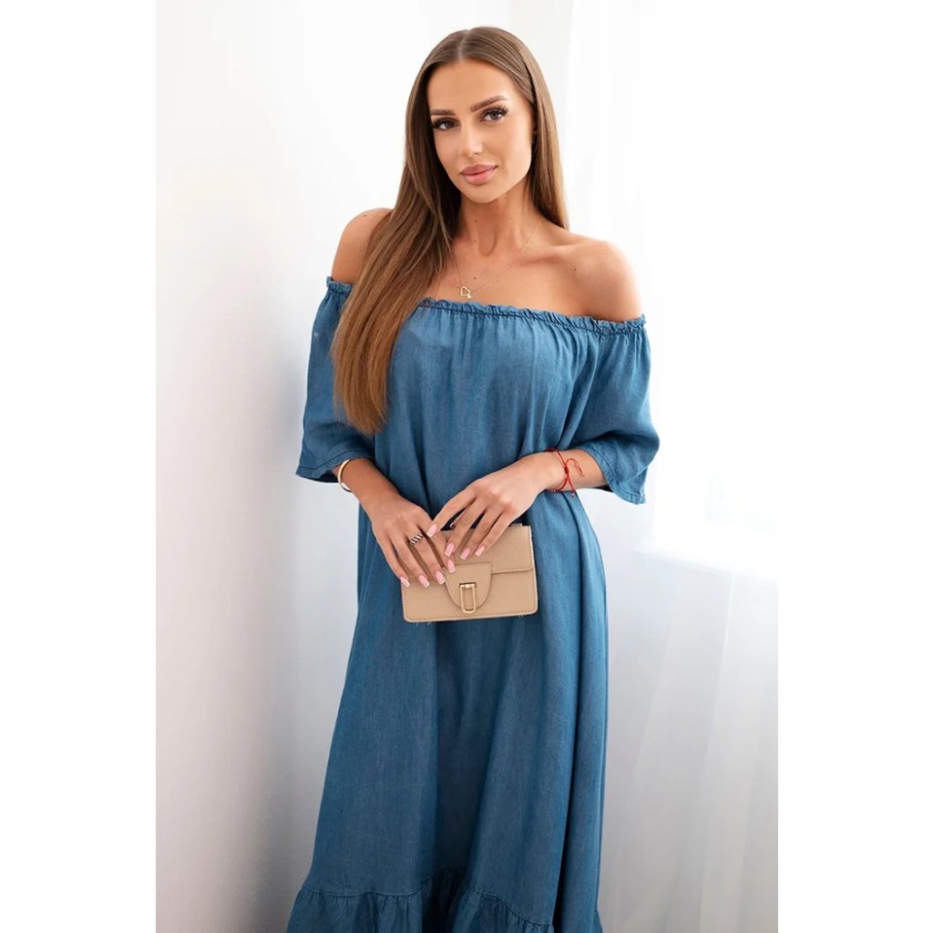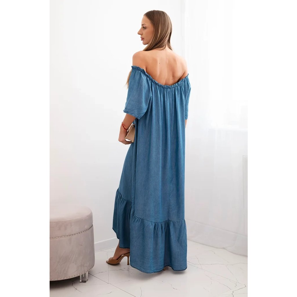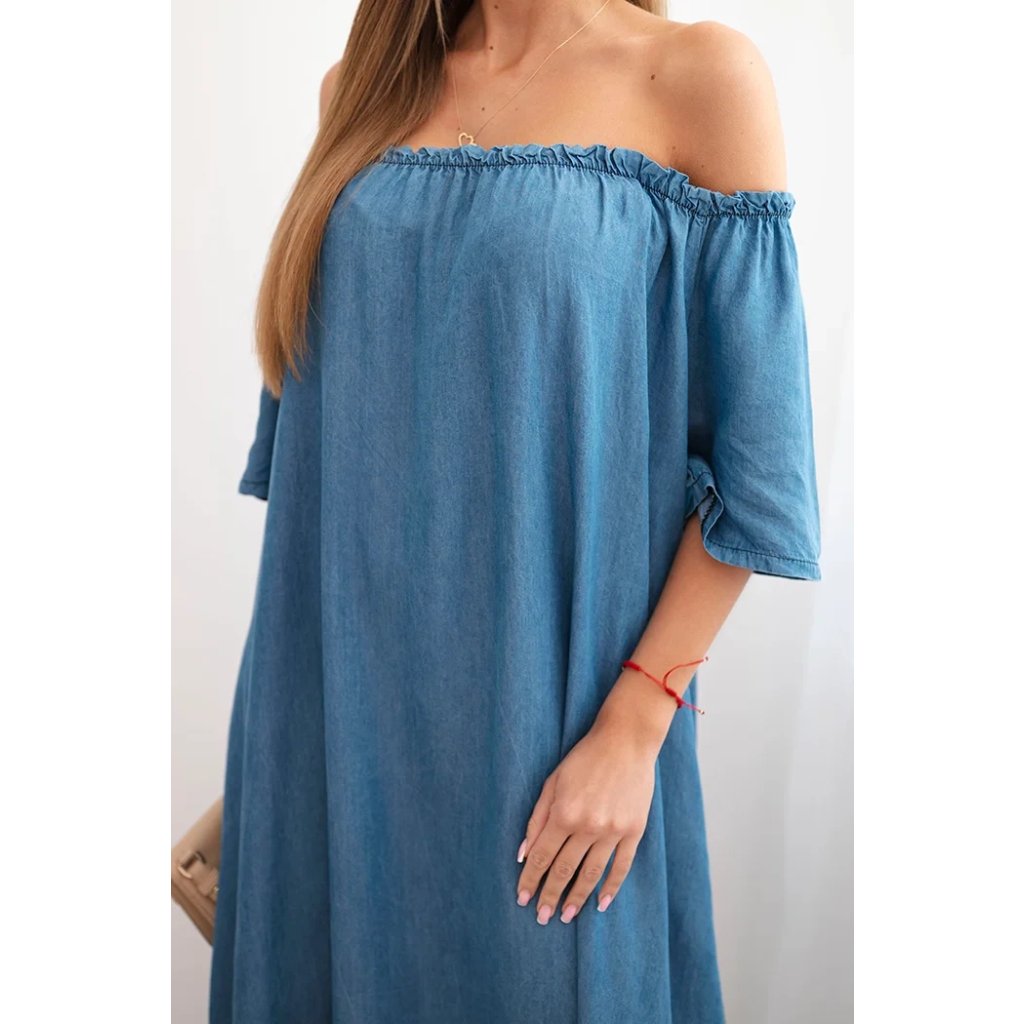 Dámské šaty s krátkým rukávem a volánky světlý denim