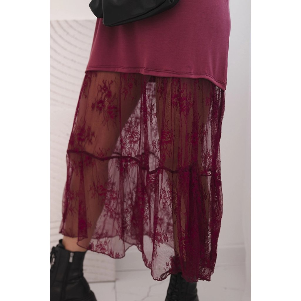 Tento dámský šaty s tylovým spodkem a rukávy jsou ideální volbou pro ženy, které se rády odlišují stylovým a zároveň pohodlným oblečením. Vrchní část je vyrobena z měkkého modalového materiálu, který zajišťuje pohodlí při nošení, a lehce oversize střih zaručuje volnost pohybu. Naopak lehce průhledný tylový spodek a rukávy dodávají celku lehkost a módní, ženský charakter.