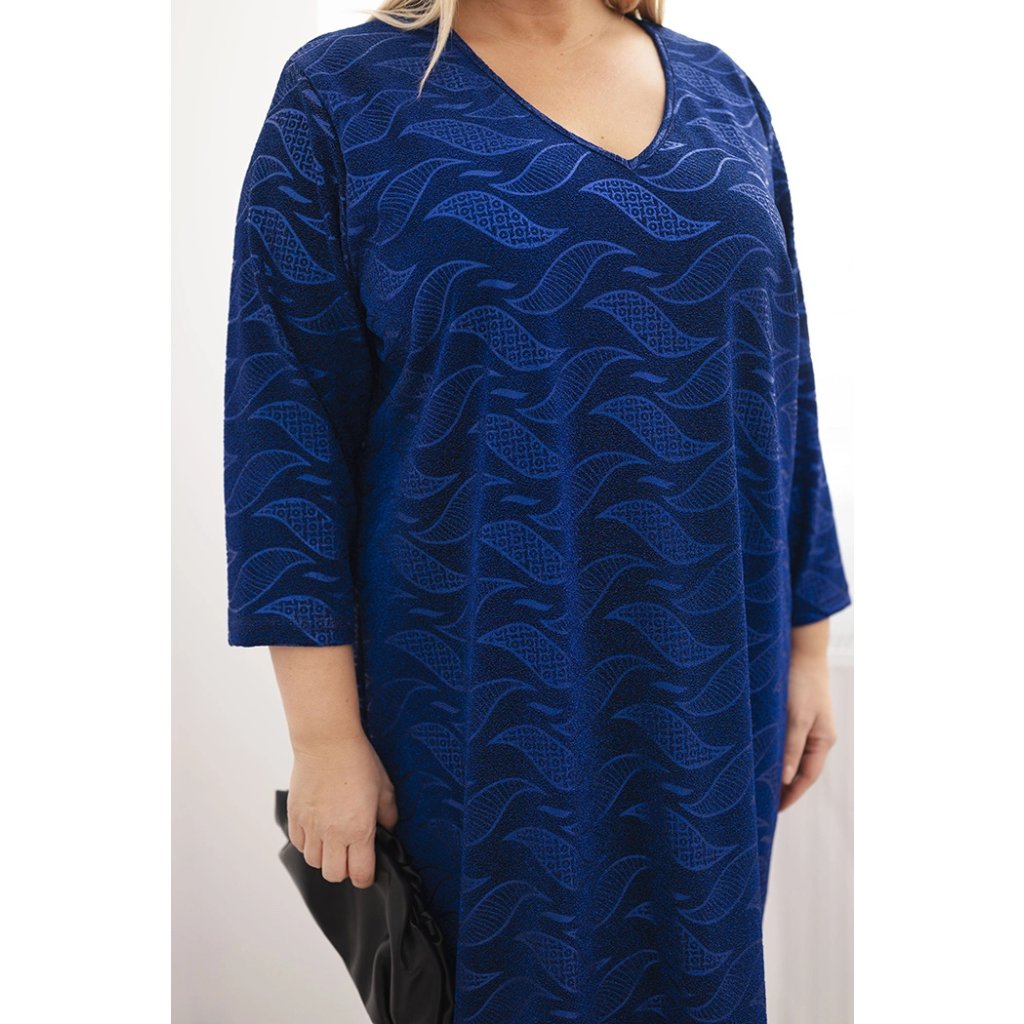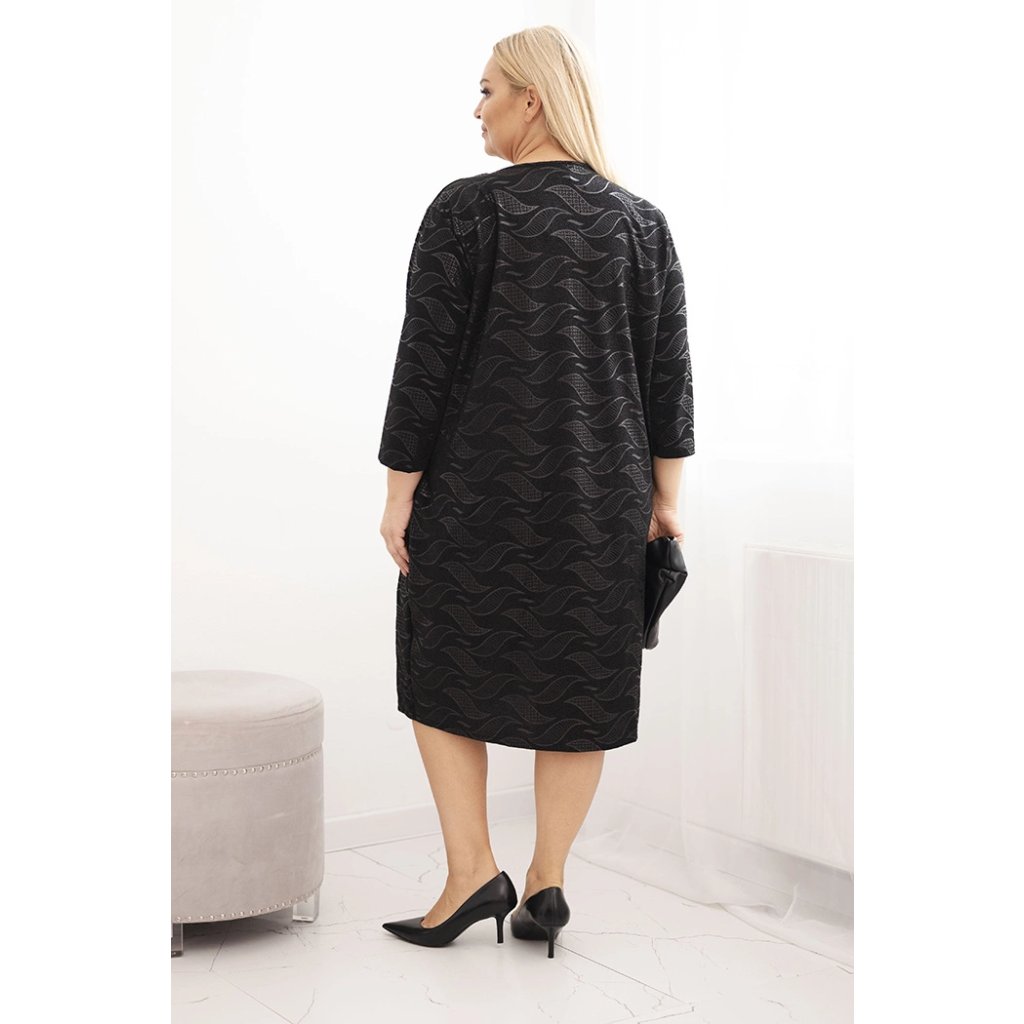 Geometrický vzor jí dodává charakter, a délka nad kolena podtrhuje ženskou siluetu, zatímco zakrývá drobné nedokonalosti. Ideální volba pro dámy, které si cení pohodlí a elegance.