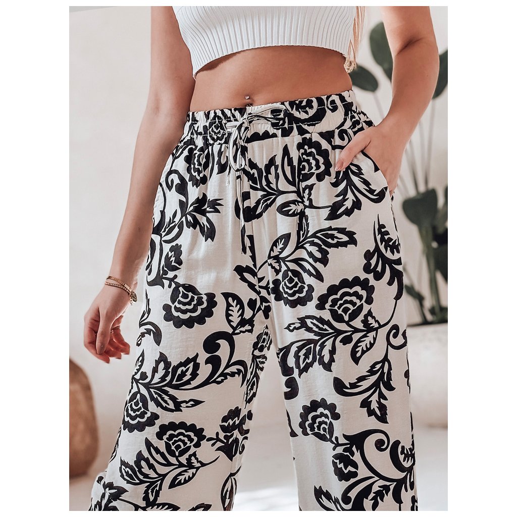Dámské kalhoty LOVEGARDEN s květinovým potiskem a širokými nohavicemi