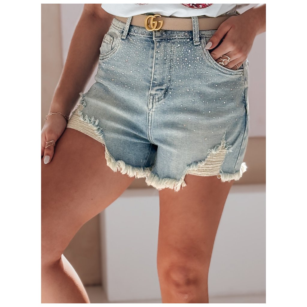 Dámské džínové kraťasy s kamínky JAKO HVĚZDA
