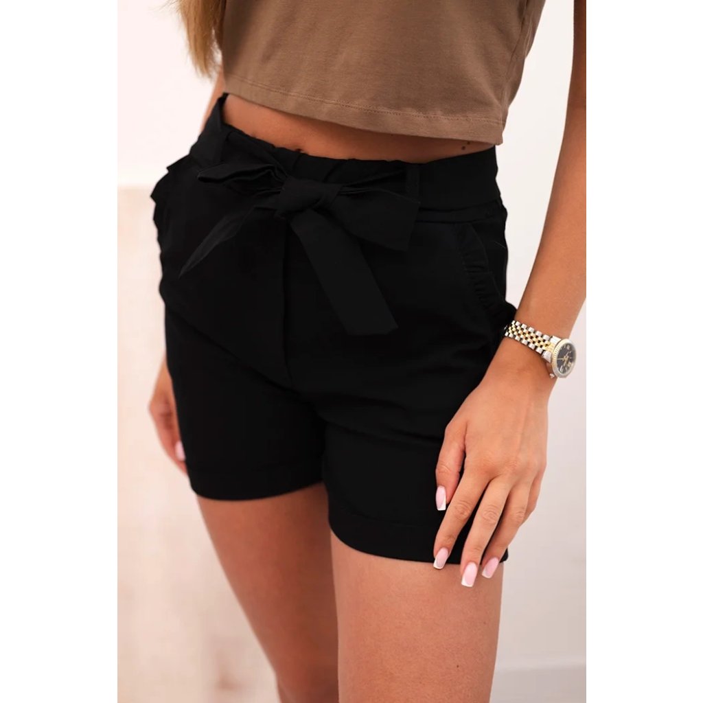 Stylové dámské šortky s ozdobnou mašlí jsou skvělou volbou pro ženy, které si cení módy a pohodlí. Vyrobené z měkkého materiálu s příměsí viskózy se krásně přizpůsobí postavě a zdůrazní její přednosti. Díky vysokému pasu a elegantnímu pásku s mašlí působí šortky velmi žensky. Volánky u kapes dodávají celku jemný půvab. Ideální volba na letní procházky, setkání s přáteli nebo neformální výlety. Velikost je univerzální a bude vhodná pro ženy velikosti S, M nebo L.