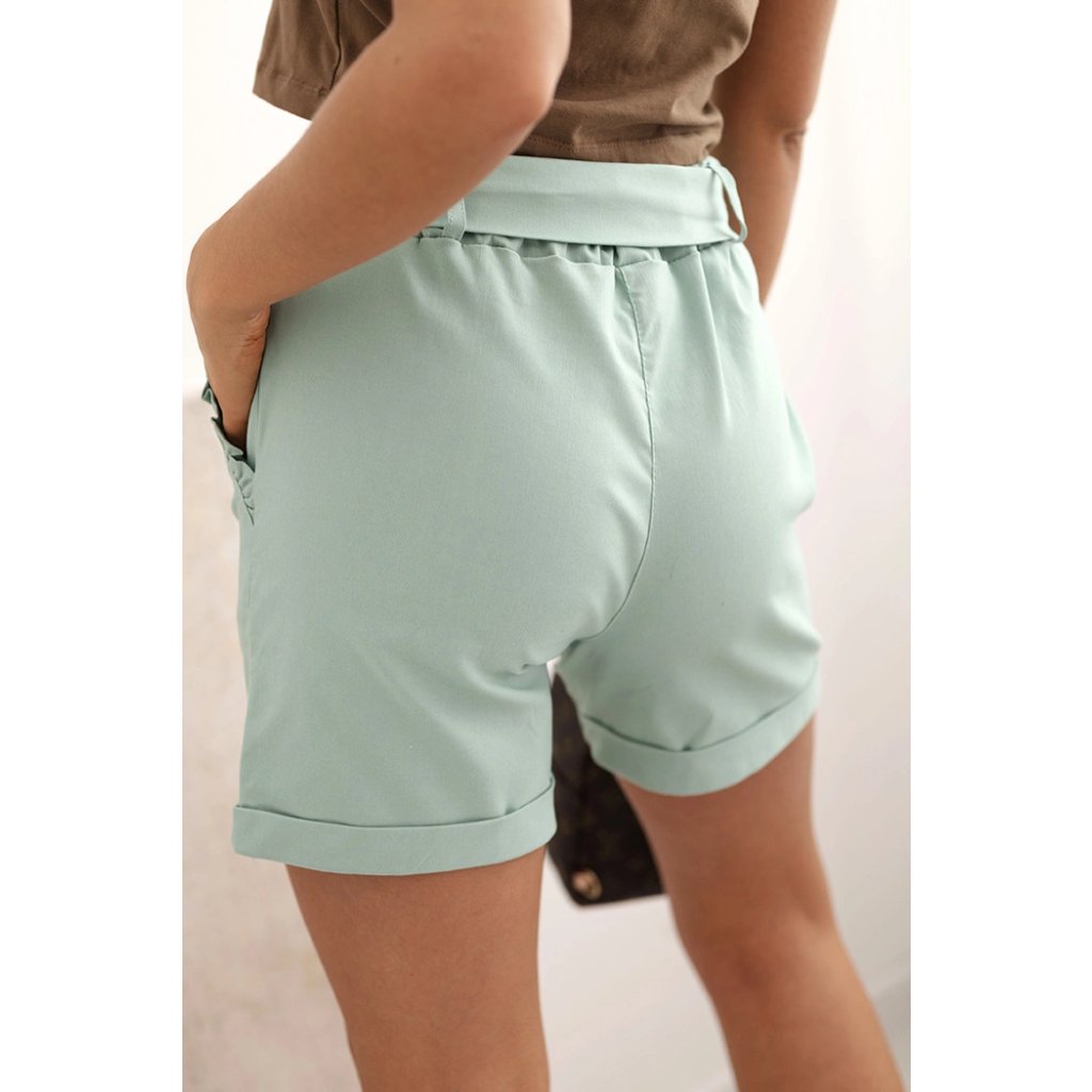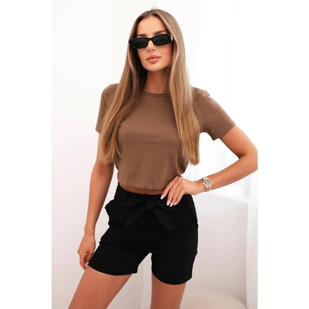 Stylové dámské šortky s ozdobnou mašlí jsou skvělou volbou pro ženy, které si cení módy a pohodlí. Vyrobené z měkkého materiálu s příměsí viskózy se krásně přizpůsobí postavě a zdůrazní její přednosti. Díky vysokému pasu a elegantnímu pásku s mašlí působí šortky velmi žensky. Volánky u kapes dodávají celku jemný půvab. Ideální volba na letní procházky, setkání s přáteli nebo neformální výlety. Velikost je univerzální a bude vhodná pro ženy velikosti S, M nebo L.