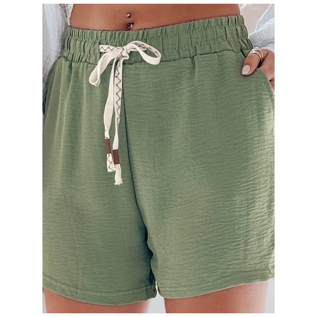 Tyto dámské kraťasy vyrobené z jemně texturované látky okouzlují svou jednoduchostí a letním nádechem. Vysoký pas a elastický pas zajišťují pohodlí, zatímco ozdobná šňůrka dodává jedinečný nádech. Tento všestranný design se perfektně hodí k topům, košilím a sandálům. Tento styl lze snadno kombinovat s každodenními letními outfity.