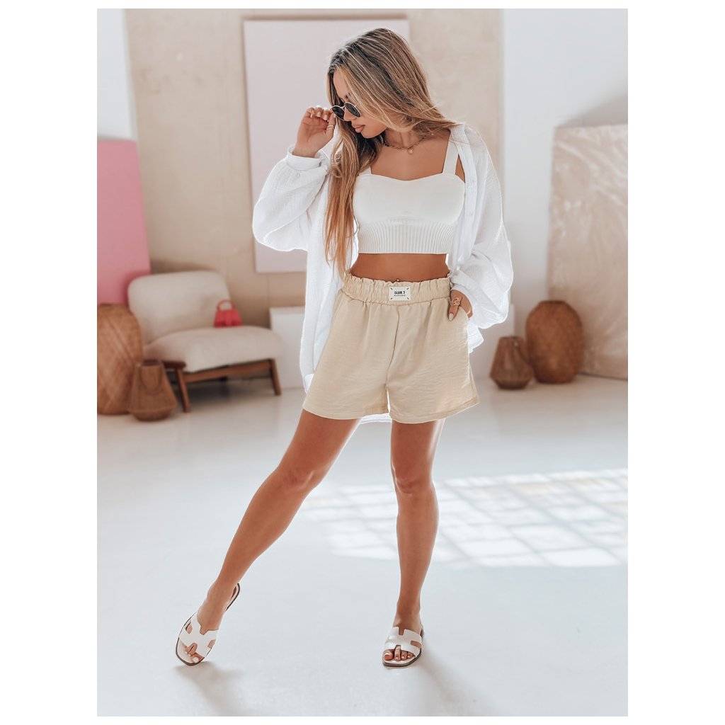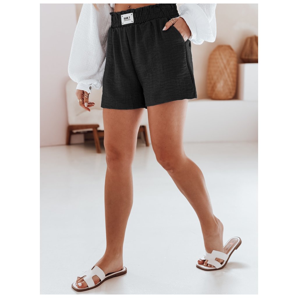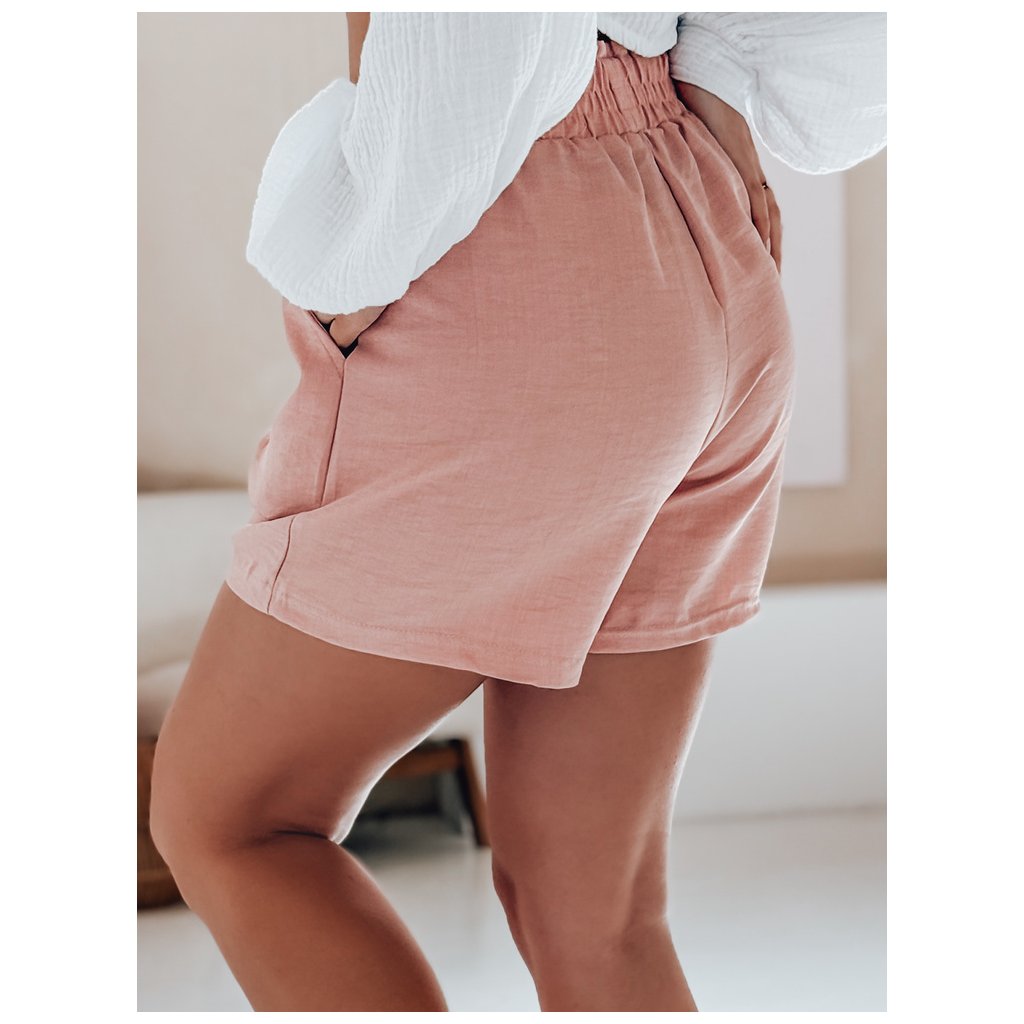 Tyto dámské kraťasy s vysokým pasem a širokým elastickým pasem jsou ideální pro ženy, které si v letních outfitech cení pohodlí a volnosti pohybu. Volný střih zajišťuje prodyšnost i v horkých dnech a boční kapsy dodávají funkčnost. Decentní pas zdůrazňuje ležérní vzhled. Jsou perfektní s crop topy nebo košilemi a jsou ideální jak pro nošení do města, tak na dovolenou.