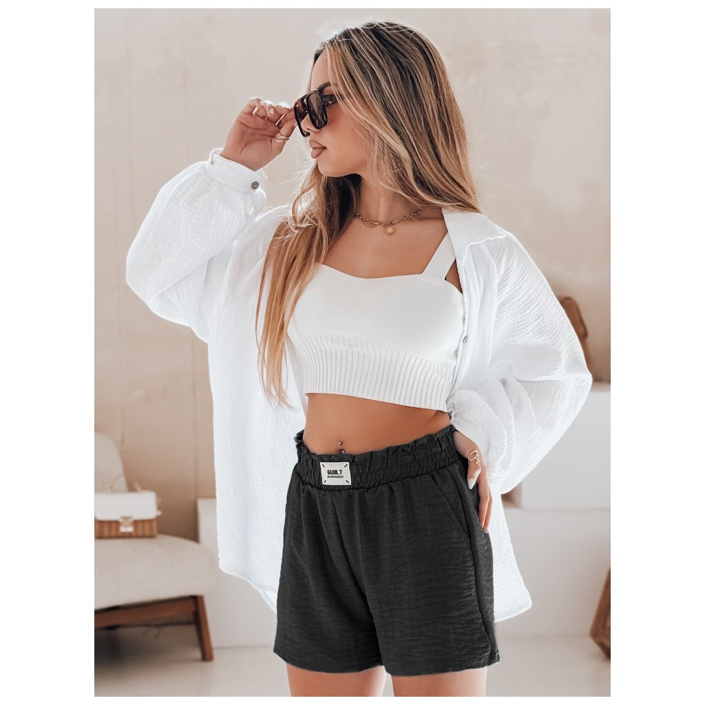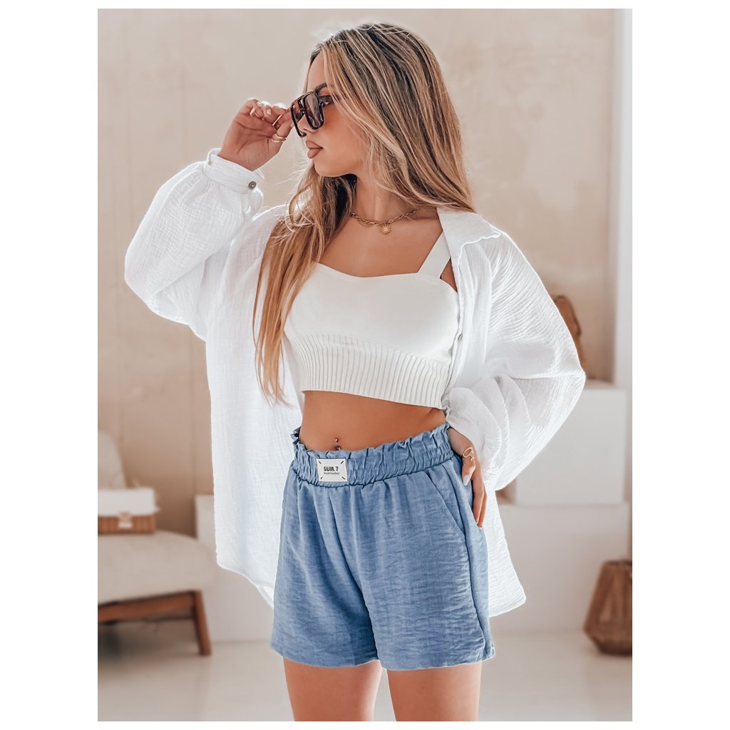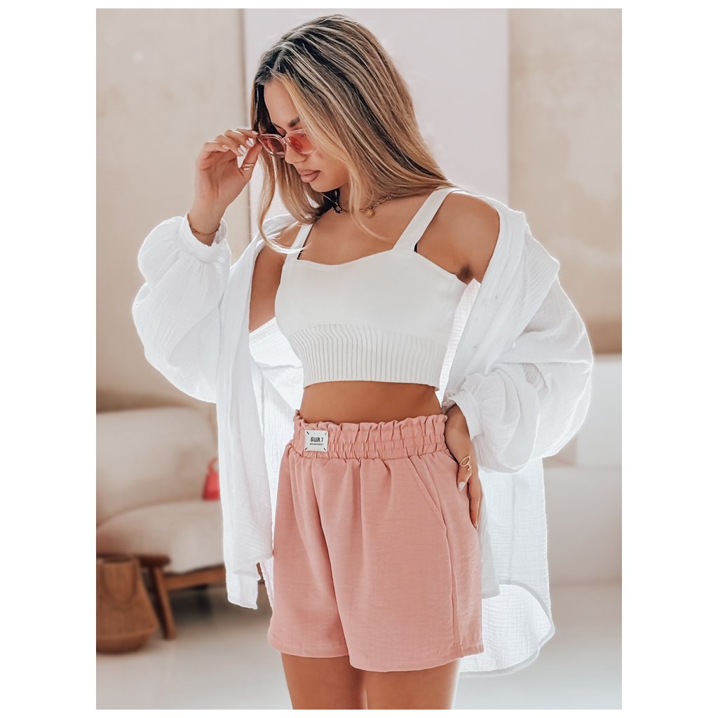 Tyto dámské kraťasy s vysokým pasem a širokým elastickým pasem jsou ideální pro ženy, které si v letních outfitech cení pohodlí a volnosti pohybu. Volný střih zajišťuje prodyšnost i v horkých dnech a boční kapsy dodávají funkčnost. Decentní pas zdůrazňuje ležérní vzhled. Jsou perfektní s crop topy nebo košilemi a jsou ideální jak pro nošení do města, tak na dovolenou.