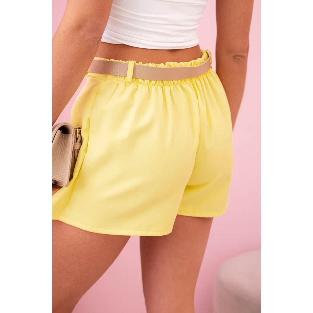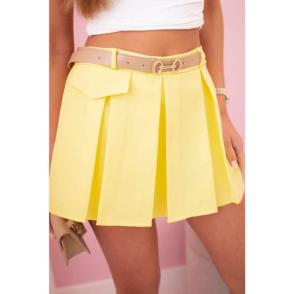 Tyto stylové dámské sukňo-šortky jsou ideální kombinací pohodlí a módního designu. Díky širokým skladům vpředu vypadají jako sukně, ale poskytují pohodlí šortek. Model je vybaven elegantním páskem s ozdobnou sponou, který krásně zvýrazňuje pas a dodává celkovému vzhledu šmrnc. Vysoký pas a elastický pás zajišťují skvělé přizpůsobení postavě a volnost pohybu. Skvělý tip na jaro a léto – jak na každodenní nošení, tak i na elegantnější příležitosti. Lehký, vzdušný materiál dodává ženský a stylový vzhled. Sukňo-šortky skvěle ladí s topem, košilí nebo krátkým sakem. Velikost je univerzální a hodí se pro ženy velikosti S, M nebo L.