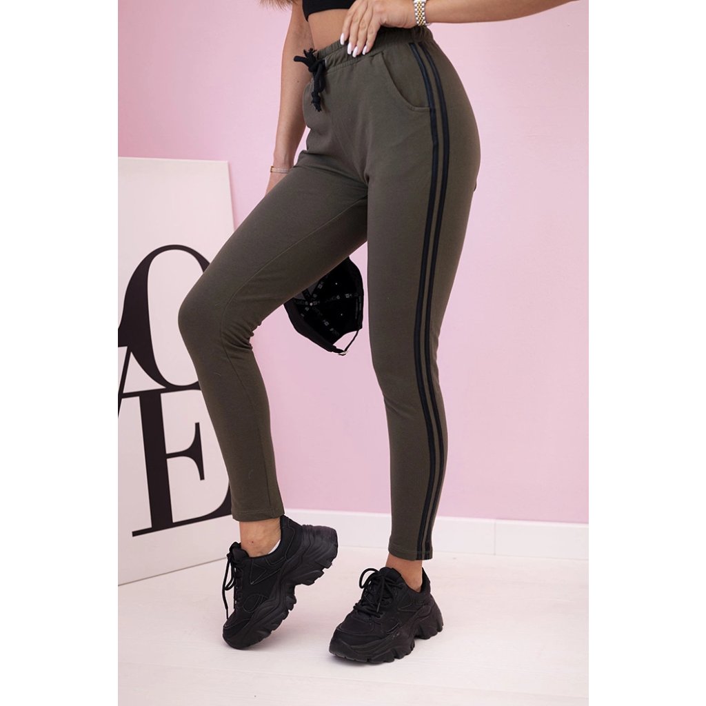 Dámské tepláky 67774 s lampasy a vázáním v pase