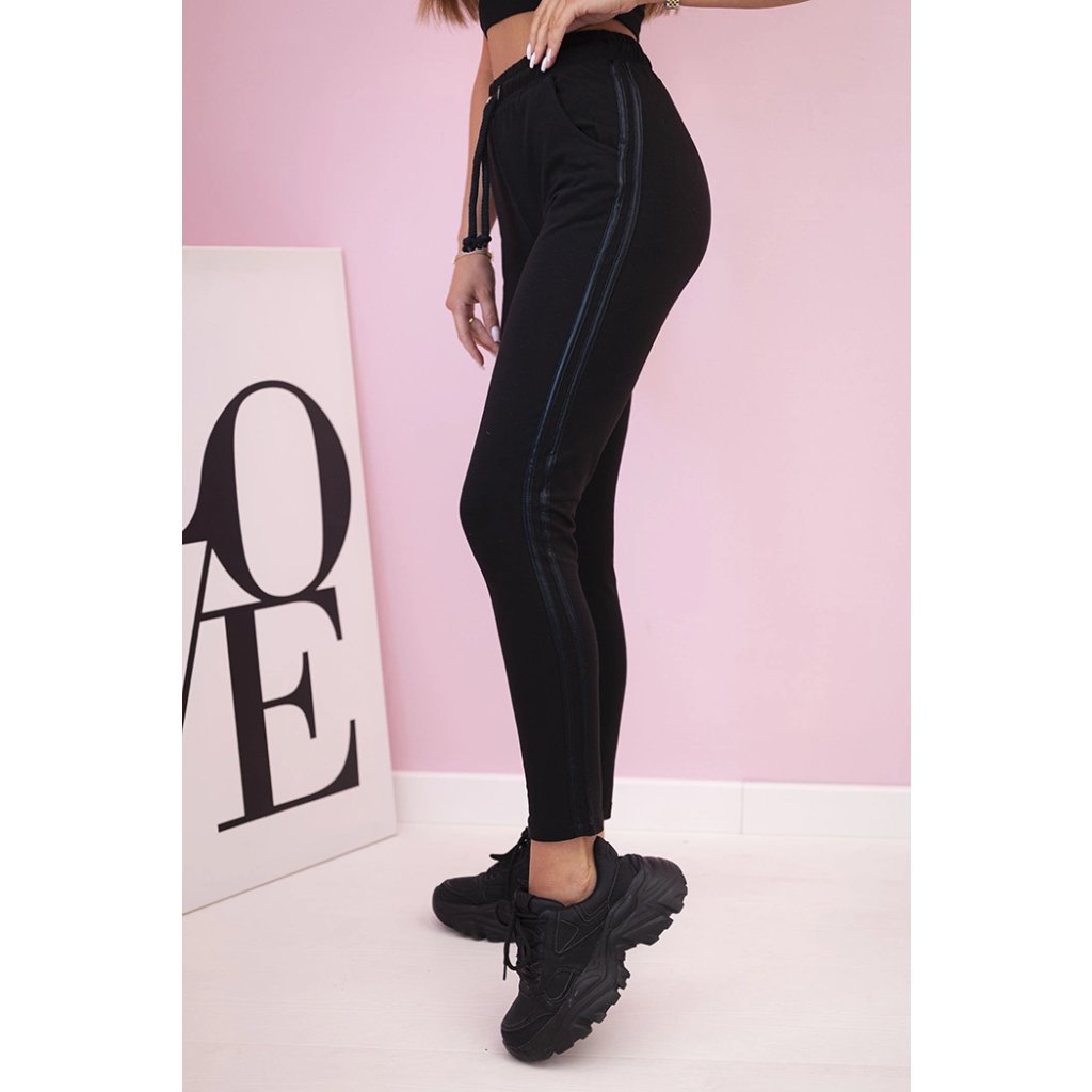 Dámské tepláky 67774 s lampasy a vázáním v pase