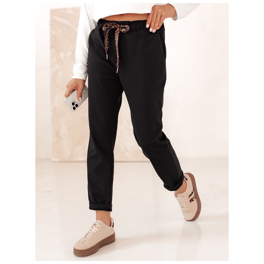 Moderní tepláky, které kombinují pohodlí s městským stylem. Vyrobeny z měkké tkaniny, perfektně padnou a zajišťují volnost pohybu po celý den. Dekorativní šňůrka se zvířecím motivem dodává kalhotám charakter, díky čemuž jsou skvělou volbou pro ležérní outfity. Elastický pas zvyšuje pohodlí, zatímco zúžený střih vytváří lehkou siluetu. Ideální pro každodenní procházky i víkendové pobyty.