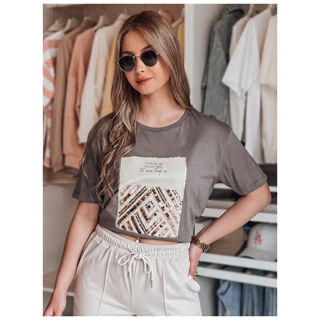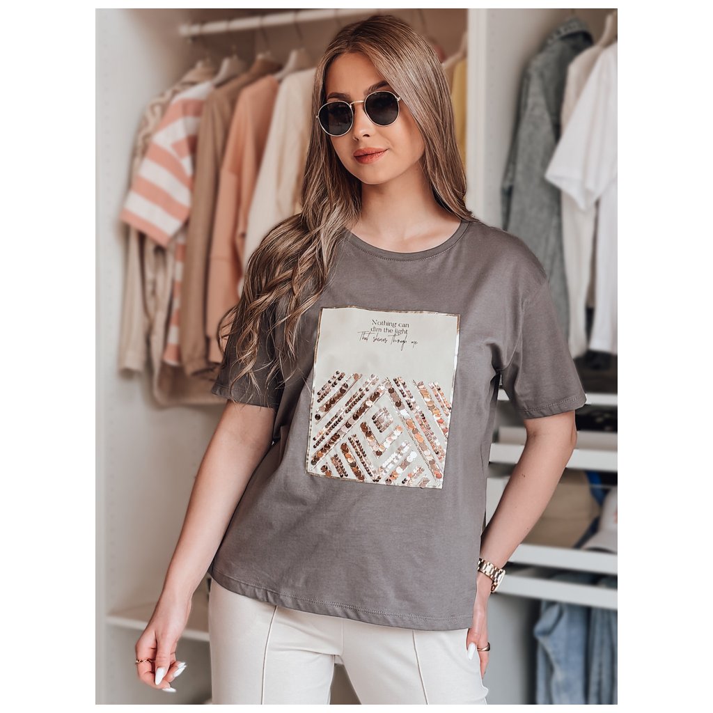 Poutavé tričko CENTIA je nezbytnou součástí šatníku každé ženy, která si cení jednoduchosti s nádechem extravagance. Flitrový potisk se jemně třpytí s každým pohybem a dodává jemnou dynamiku i těm nejjednodušším outfitům. Tričko CENTIA, které se perfektně hodí k džínům nebo elegantním kalhotám, nabízí všestrannost a styl, který se bude hodit kdekoli a kdykoli.