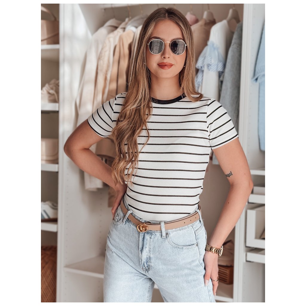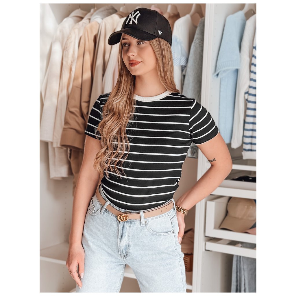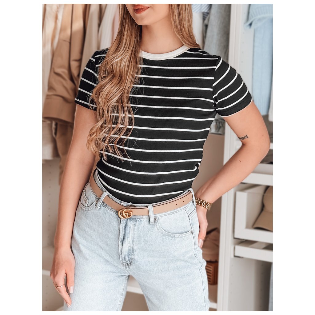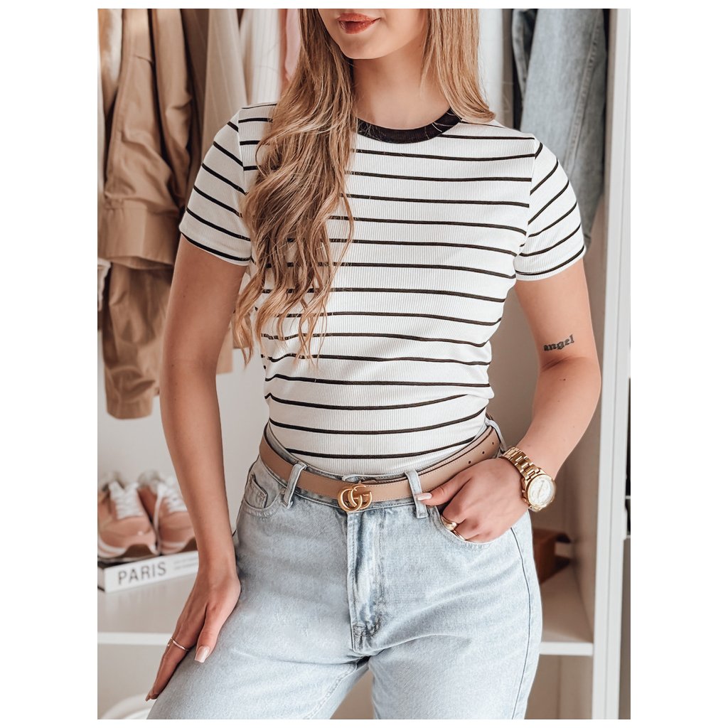 Toto přiléhavé pruhované tričko je nezbytností v každém šatníku! Vyrobeno z elastické žebrované látky pro pohodlí a skvělý střih. Krátké rukávy a klasický střih ho činí perfektním k džínům a teniskám.