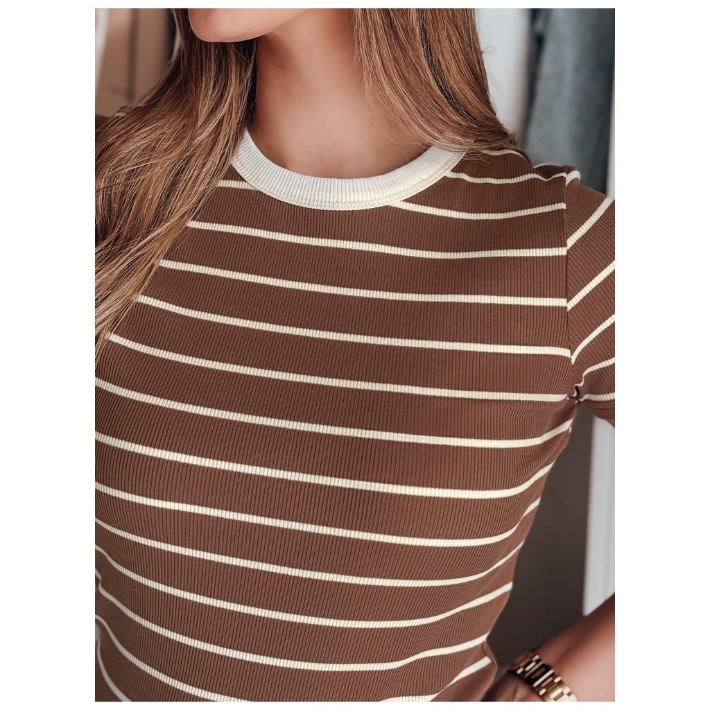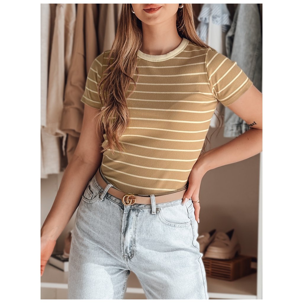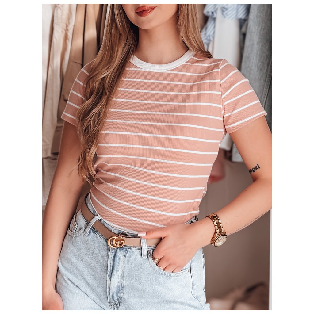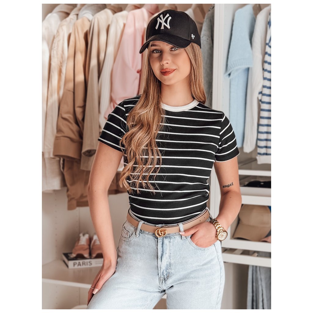 Toto přiléhavé pruhované tričko je nezbytností v každém šatníku! Vyrobeno z elastické žebrované látky pro pohodlí a skvělý střih. Krátké rukávy a klasický střih ho činí perfektním k džínům a teniskám.