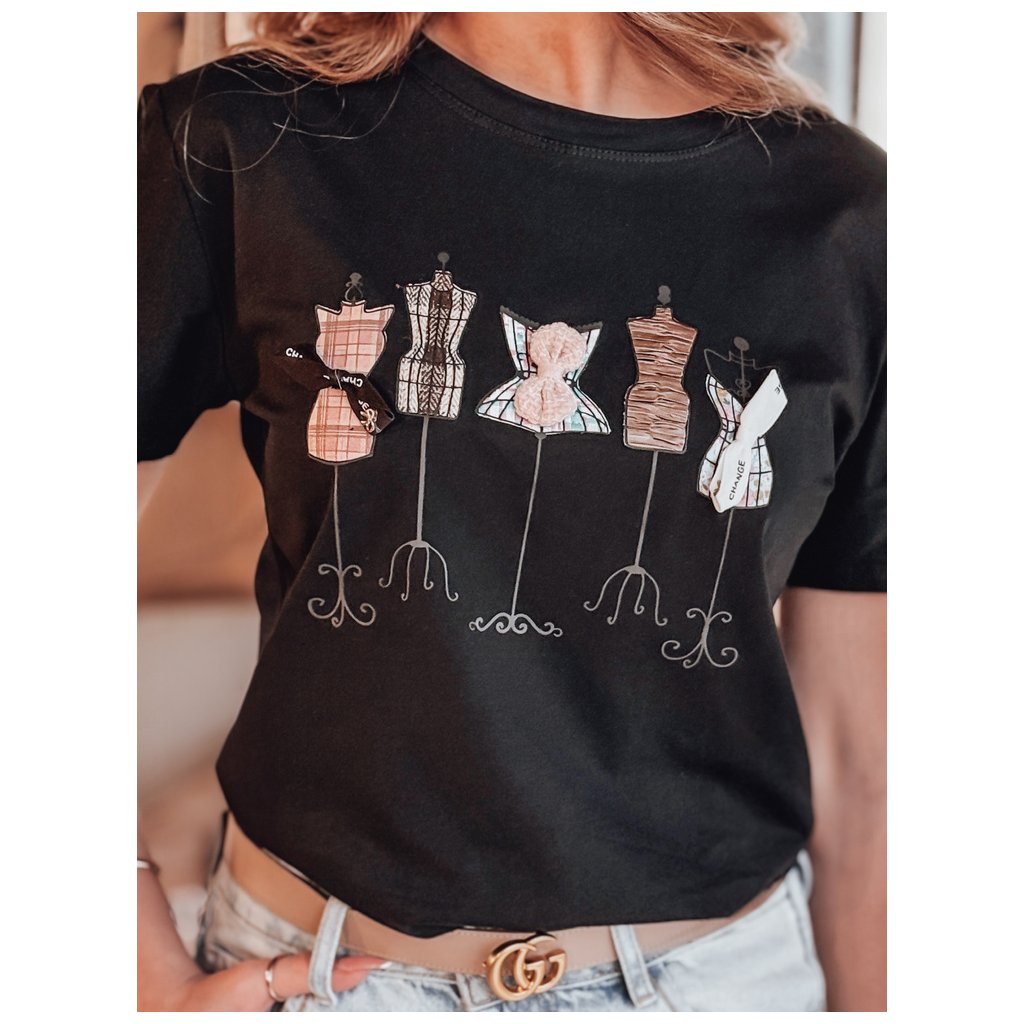 Toto tričko má okouzlující potisk figurín zdobených mašlemi. Prošívané detaily dodávají 3D efekt a zvýrazňují styl. Volný střih zajišťuje pohodlí a volnost pohybu, zatímco klasický základ se dobře hodí k mnoha outfitům. Všestranná volba pro ležérní a poloelegantní vzhled.