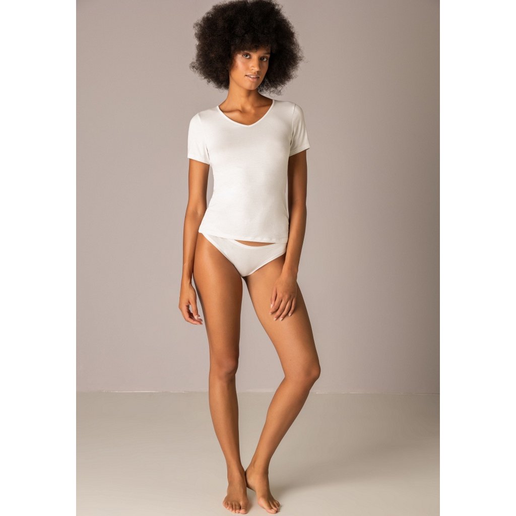 Kvalitní dámské tričko od značky Sielei. Dámské tričko s krátkým rukávem a výstřihem "V".Tričko je vyrobeno z modalu. Díky tomu je velmi měkké a příjemné na nošení. Materiál je pružný a prodyšný. Tričko má jemné, pružné švy.