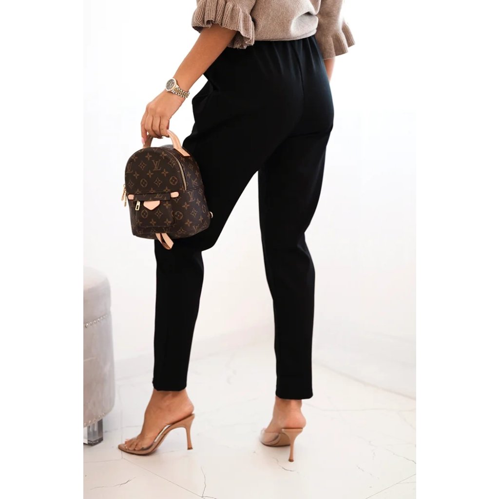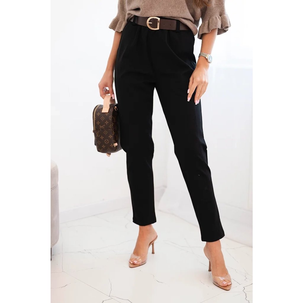 Dámské viskózové kalhoty s páskem a zúženými nohavicemi černé