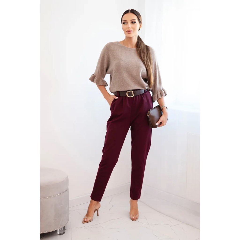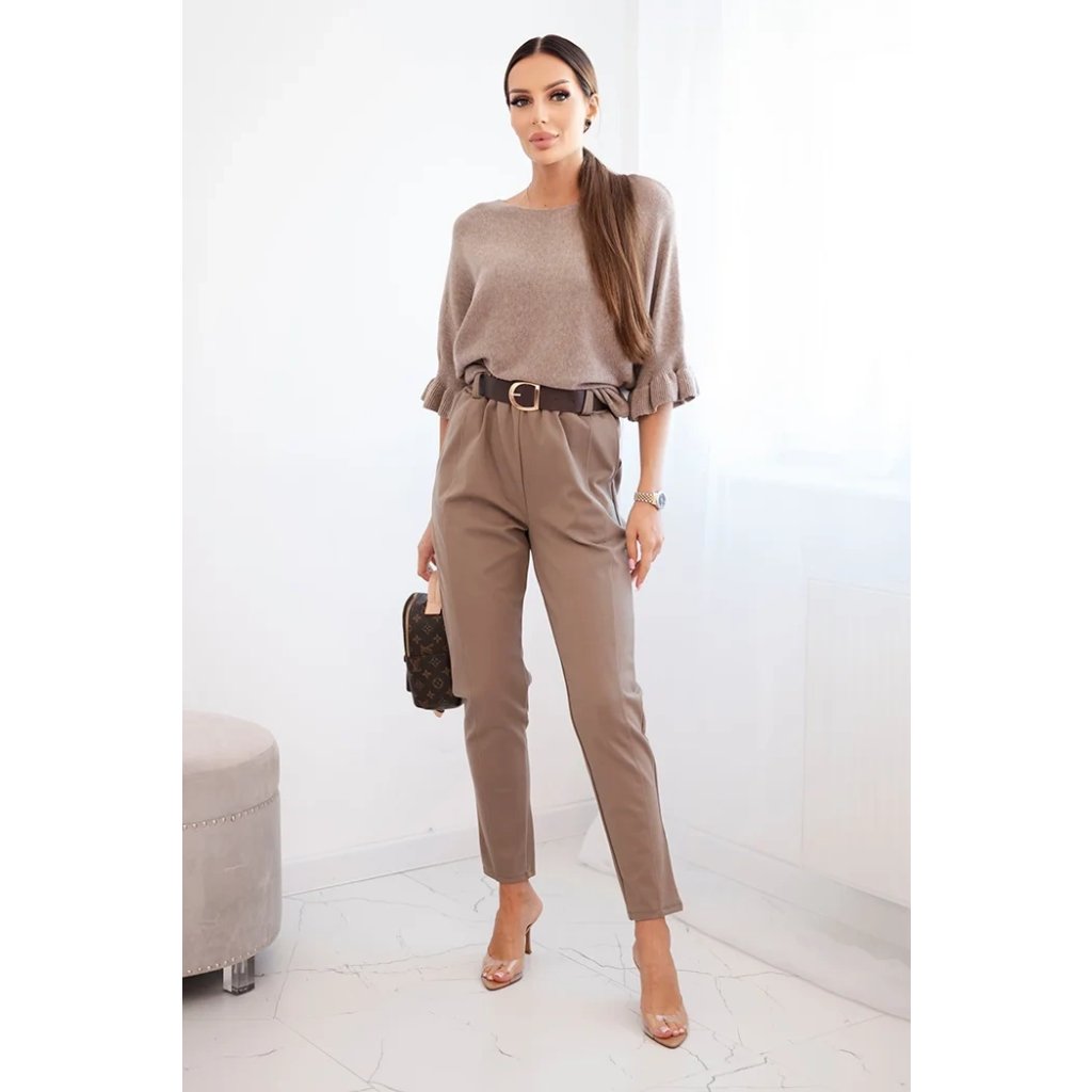 Hledáte stylové a zároveň pohodlné kalhoty, které se hodí jak do práce, tak na běžné nošení? Tyto dámské kalhoty s elegantním páskem a mírně zúženými nohavicemi jsou skvělou volbou pro ženy, které si cení třídy a komfortu. Vyrobeny z vysoce kvalitní tkaniny s příměsí viskózy a elastanu, perfektně se přizpůsobují postavě, aniž by omezovaly pohyb.