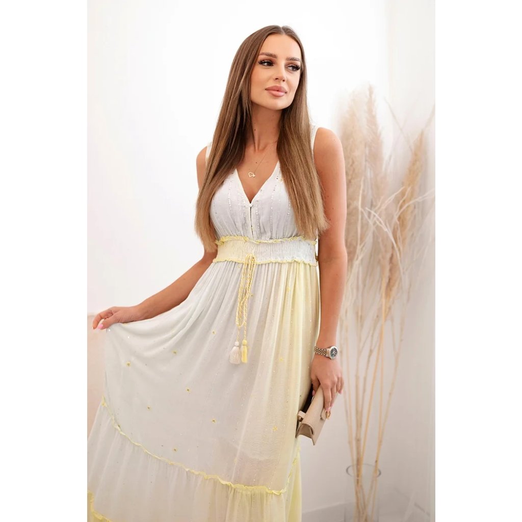 Hledáte ideální šaty na léto, dovolenou nebo festivaly? Tyto dámské maxi šaty na ramínka jsou skvělou volbou pro ženy, které si cení pohodlí a originálního stylu. Vyrobené ze 100% lehké a prodyšné viskózy, zajišťují komfort i v těch nejteplejších dnech. Módní etnický vzor a syté barvy vás jistě odliší od davu. Horní část šatů je vyrobena z elastické gumy, která se krásně přizpůsobí postavě. Tento model se skvěle hodí na pláž, procházky i letní setkání s přáteli. Univerzální velikost vhodná pro ženy velikosti S, M nebo L.