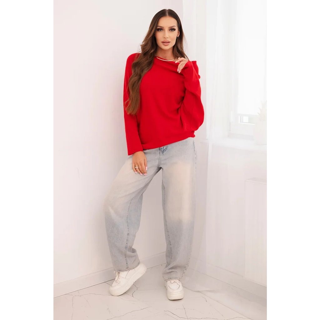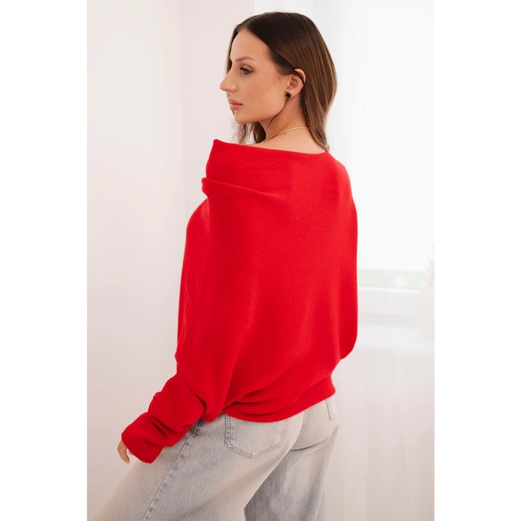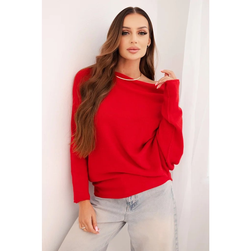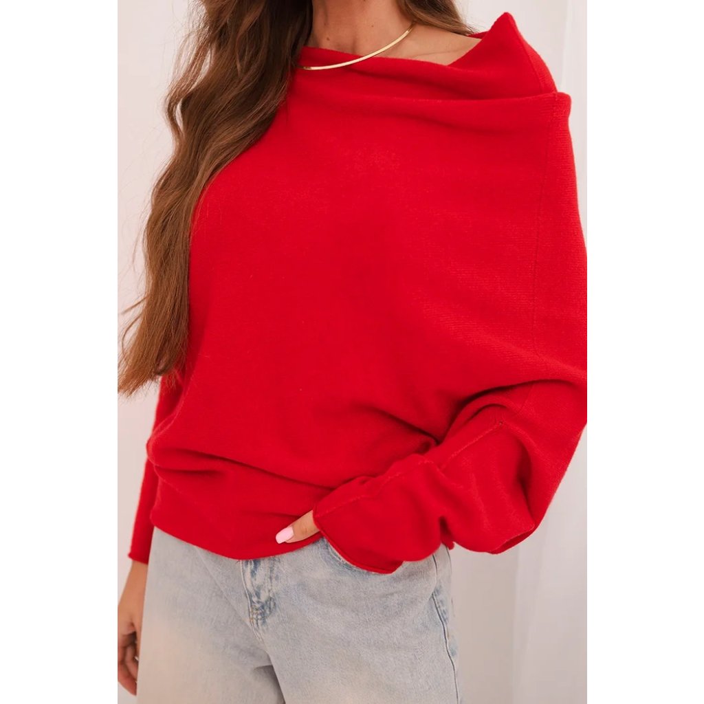 Dámský asymetrický batwing svetr viskózový červený