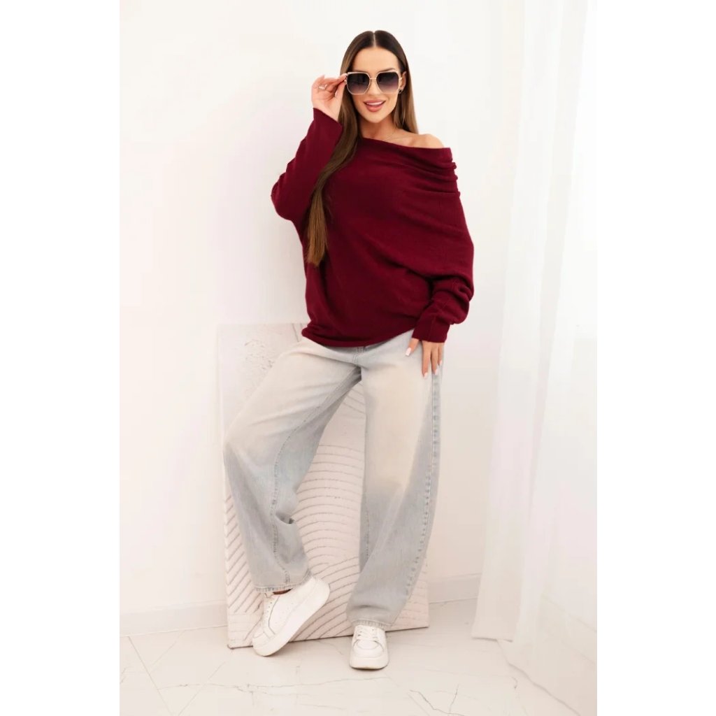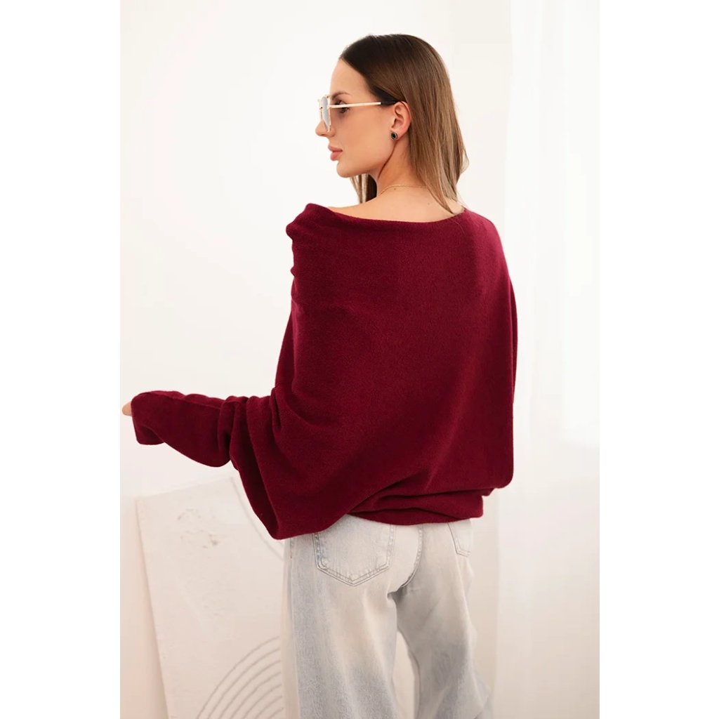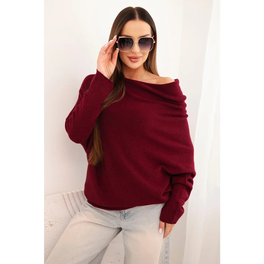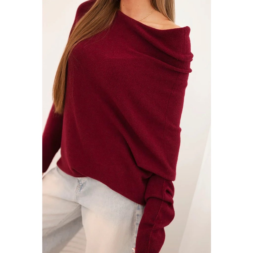 Dámský asymetrický batwing svetr z viskózy švestkový