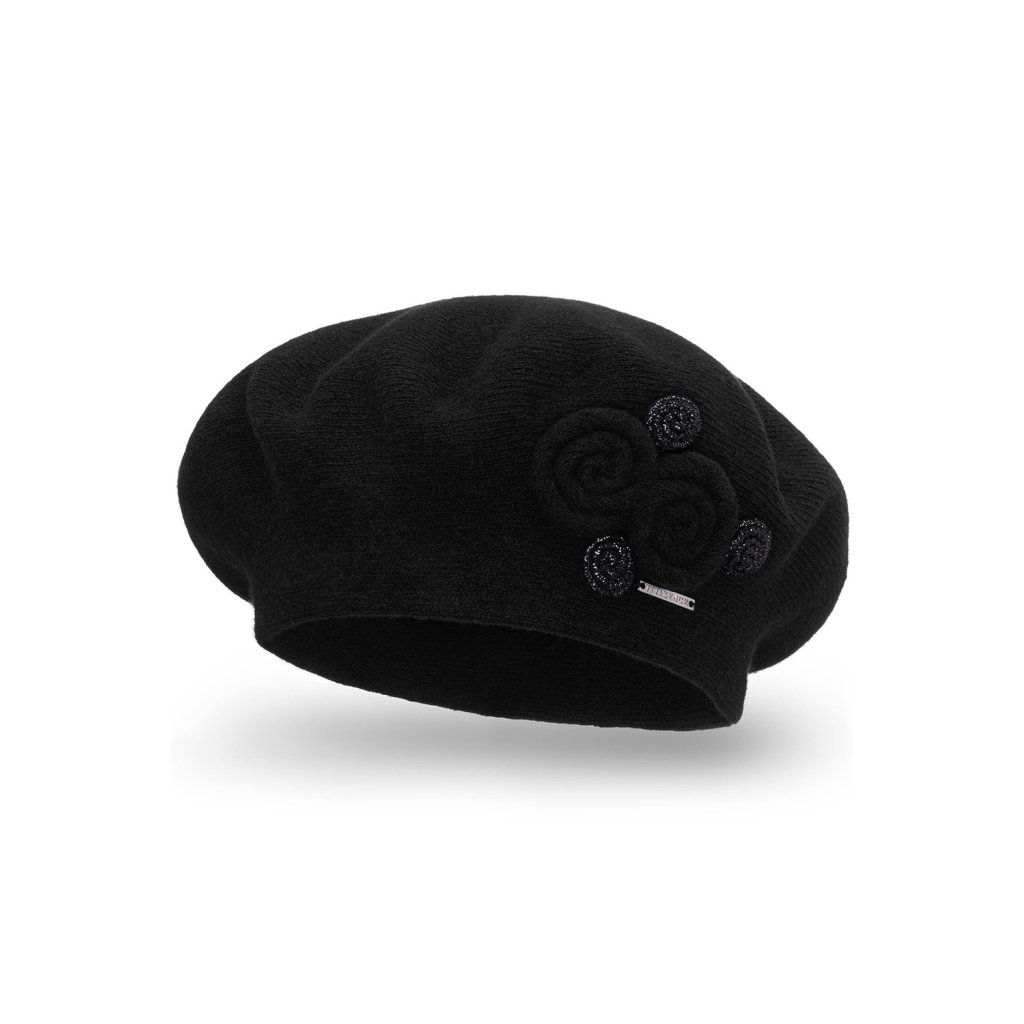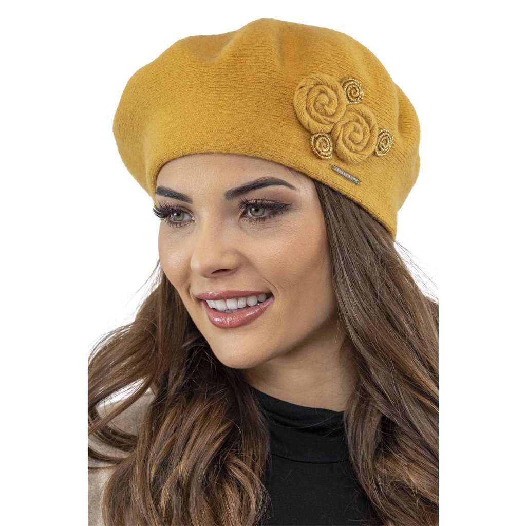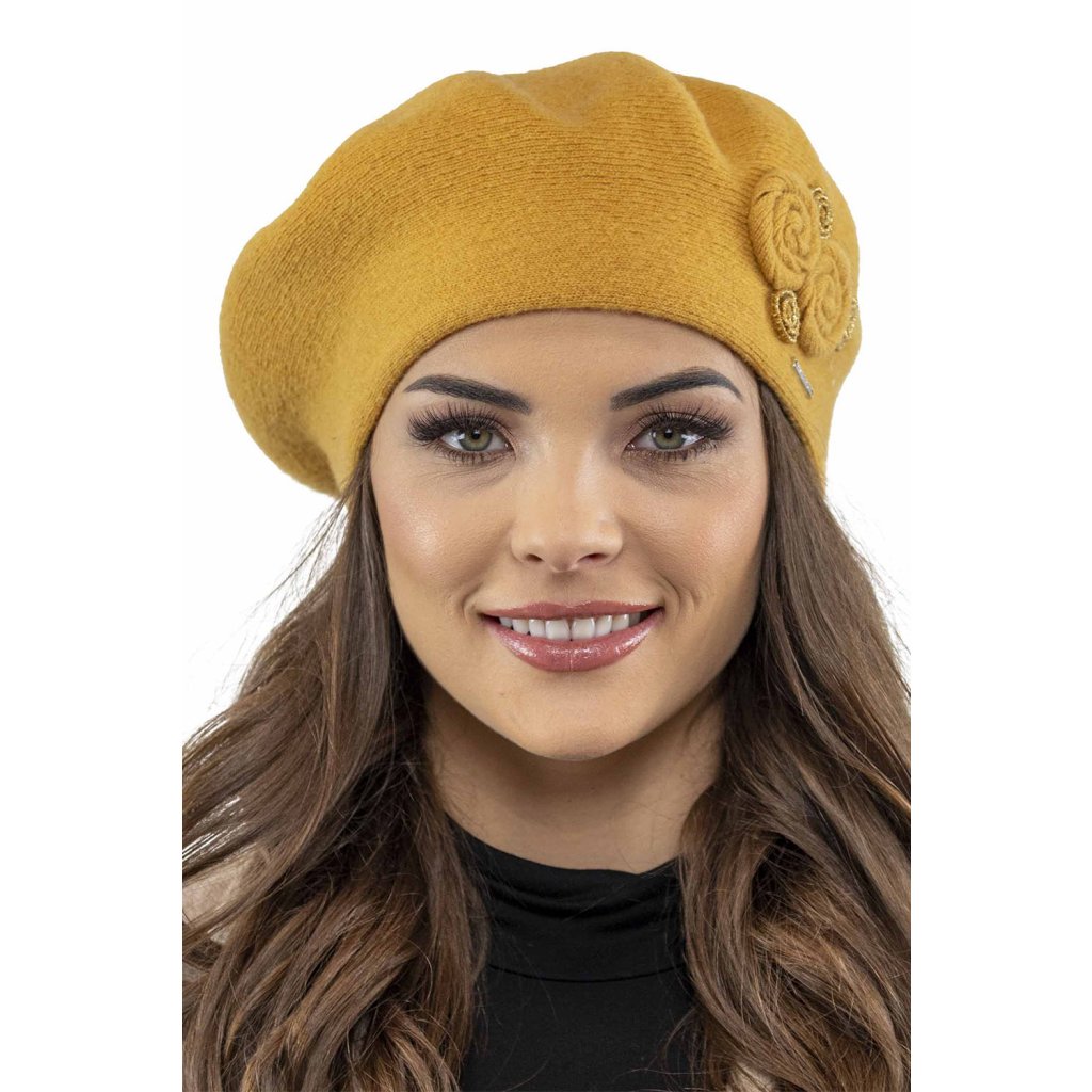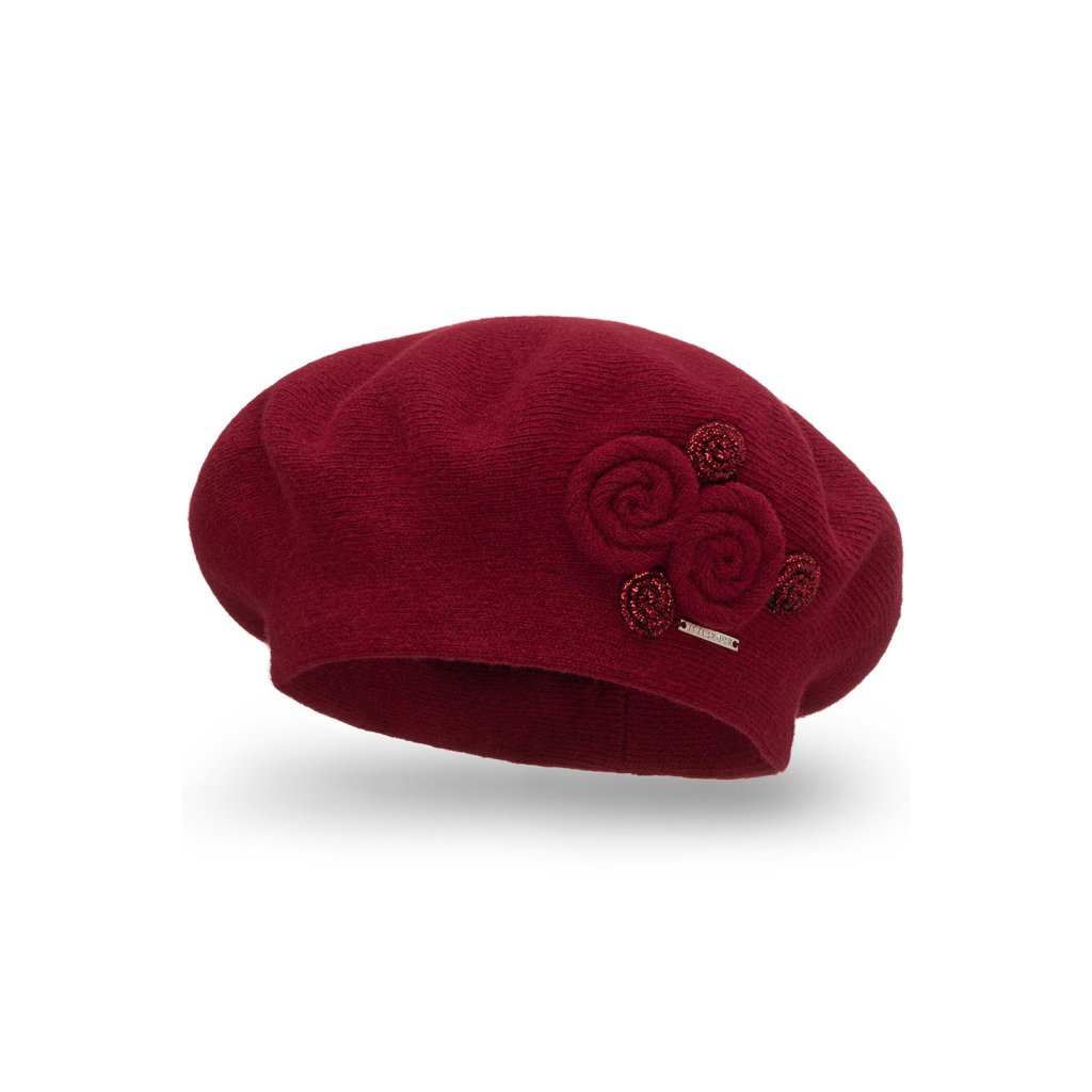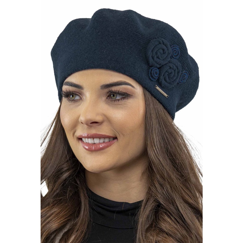 Elegantní dámský baret.- klasický střih- z hřejivé příze s přídavkem vlny- přední strana zdobená aplikací- baret dokonale přiléhá k hlavě- skvělý nápad na dárekSložení: Složení: 80 % vlna, 20 % polyamid.