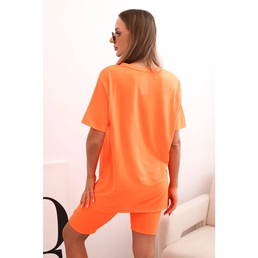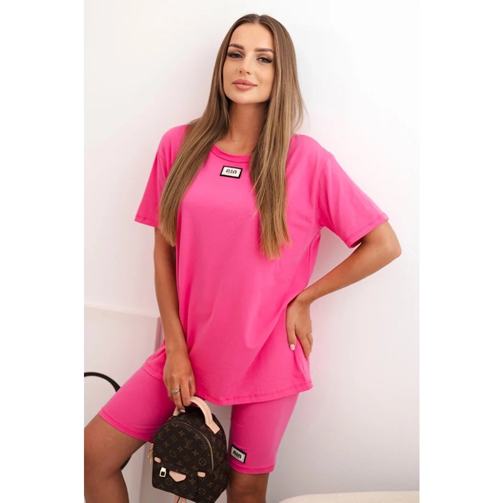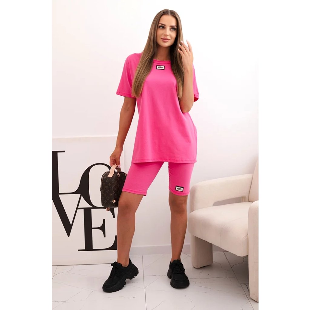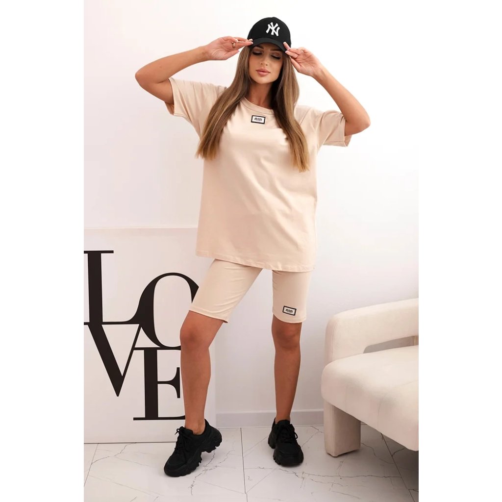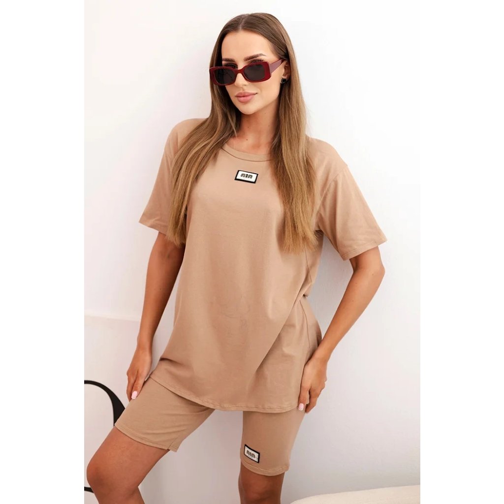 Souprava je ušitá z příjemné bavlny s přídavkem elastanu, což zajišťuje pružnost a pohodlí po celý den. Střih je volný a pohodlný, elastický pas šortek zajišťuje přizpůsobení postavě. Tričko má kulatý výstřih a jednoduchý střih, který se hodí do každého ležérního outfitu. Velikost je univerzální a vhodná pro ženy velikostí S, M nebo L.