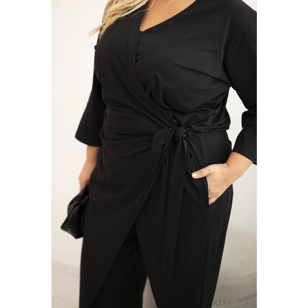 Dámský bavlněný overal 6962 Plus Size s vázáním v pase a 3/4 rukávem