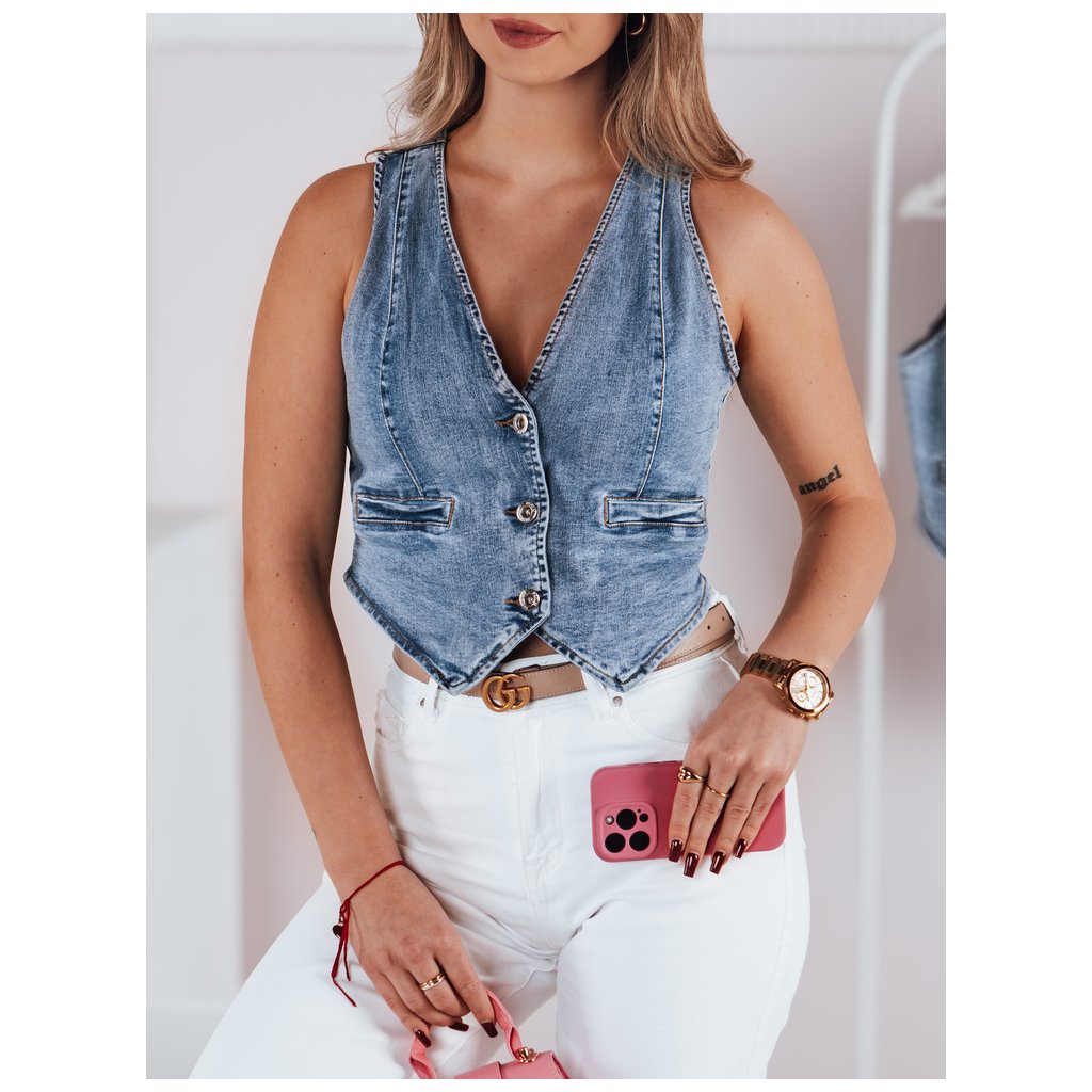 Tento džínový top má moderní střih, který dokonale lichotí postavě. Přiléhavý střih a výrazné detaily dodávají styl, zatímco vysoce kvalitní materiál zajišťuje pohodlí. Skvělá volba pro ležérní outfity s nádechem elegance, perfektně se hodí k bílým kalhotám a teniskám.
